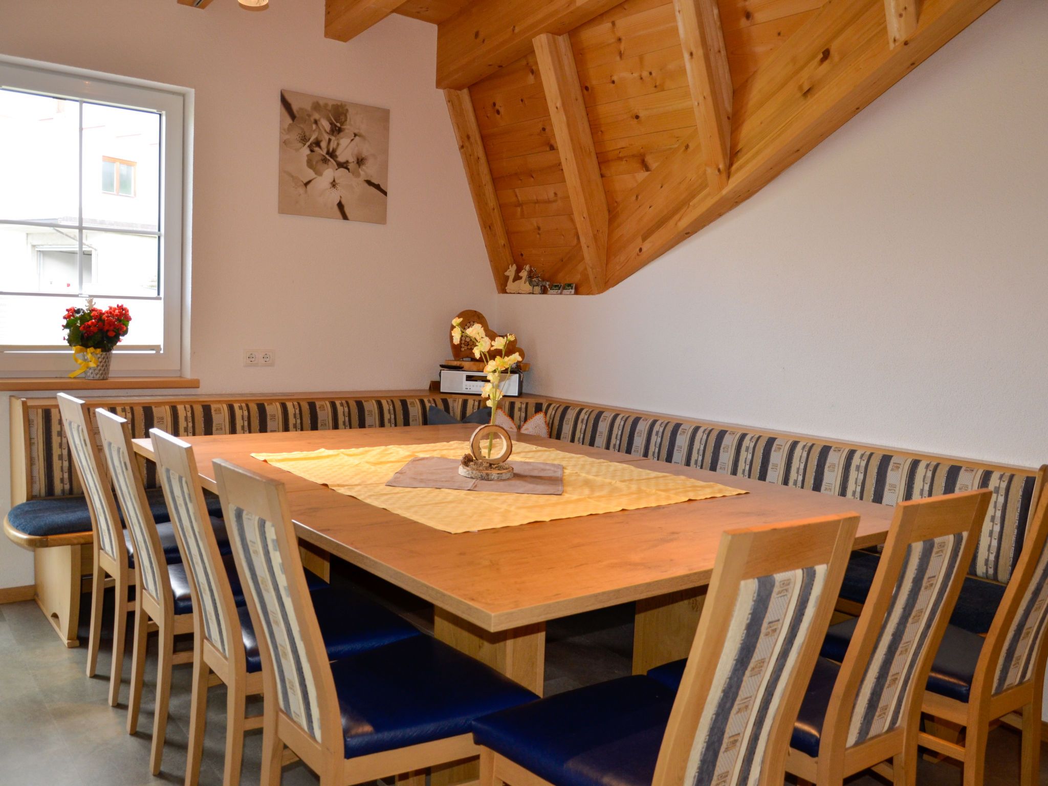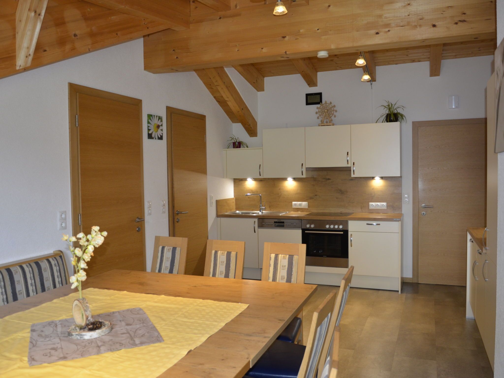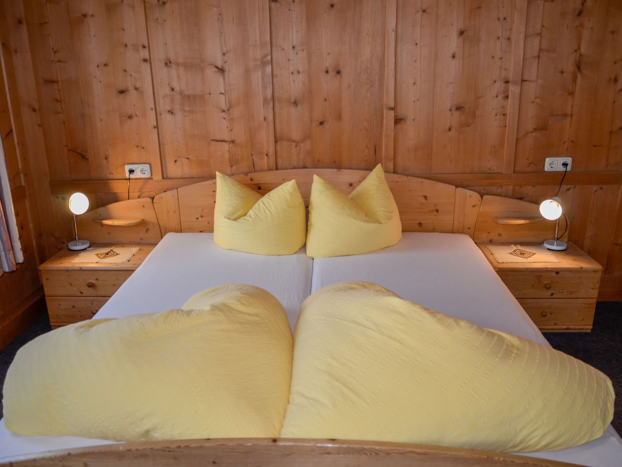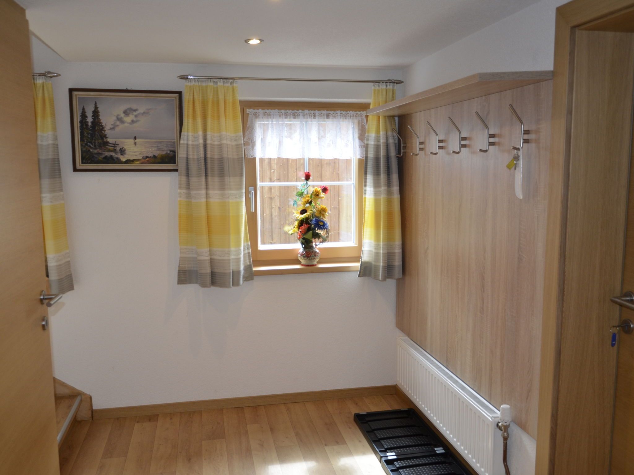 Bergblick, 6-Zimmer-Haus 160 m2 auf 2 Stockwerken. Gemütlich und mit viel Holz eingerichtet: Obergeschoss: 1 Zimmer mit 1 Doppelbett, Waschbecken und Sat-TV. 1 Zimmer mit 1 Bett (90 cm, Länge 200 cm), 1 Doppelbett und Waschbecken. 1 Doppelzimmer mit 1 Bett (90 cm, Länge 200 cm), 1 Doppelbett. Dusche/WC. 2. Obergeschoss: 2 Doppelzimmer, jedes Zimmer mit Dusche/WC. 1 Zimmer mit 1 franz. Bett (140 cm, Länge 200 cm). Grosse Wohnküche (Backofen, Geschirrspüler, 4 Glaskeramikplatten, Toaster, Wasserkocher, Tiefkühler, elektrische Kaffeemaschine) mit Esstisch, Sat-TV und Radio. Dusche/WC. Teppichboden. Grosse Terrasse 60 m2. Terrassenmöbel. Schöne Panoramasicht auf die Berge und das Tal. Zur Verfügung: Kinderhochstuhl, Babybett, Haartrockner. Internet (Wireless LAN, gratis). Parkplatz (überdacht, 4 Autos) in 100 m. Bitte beachten: Nichtraucher-Unterkunft. Eigener Eingang, Rauchmelder, Feuerlöscher.