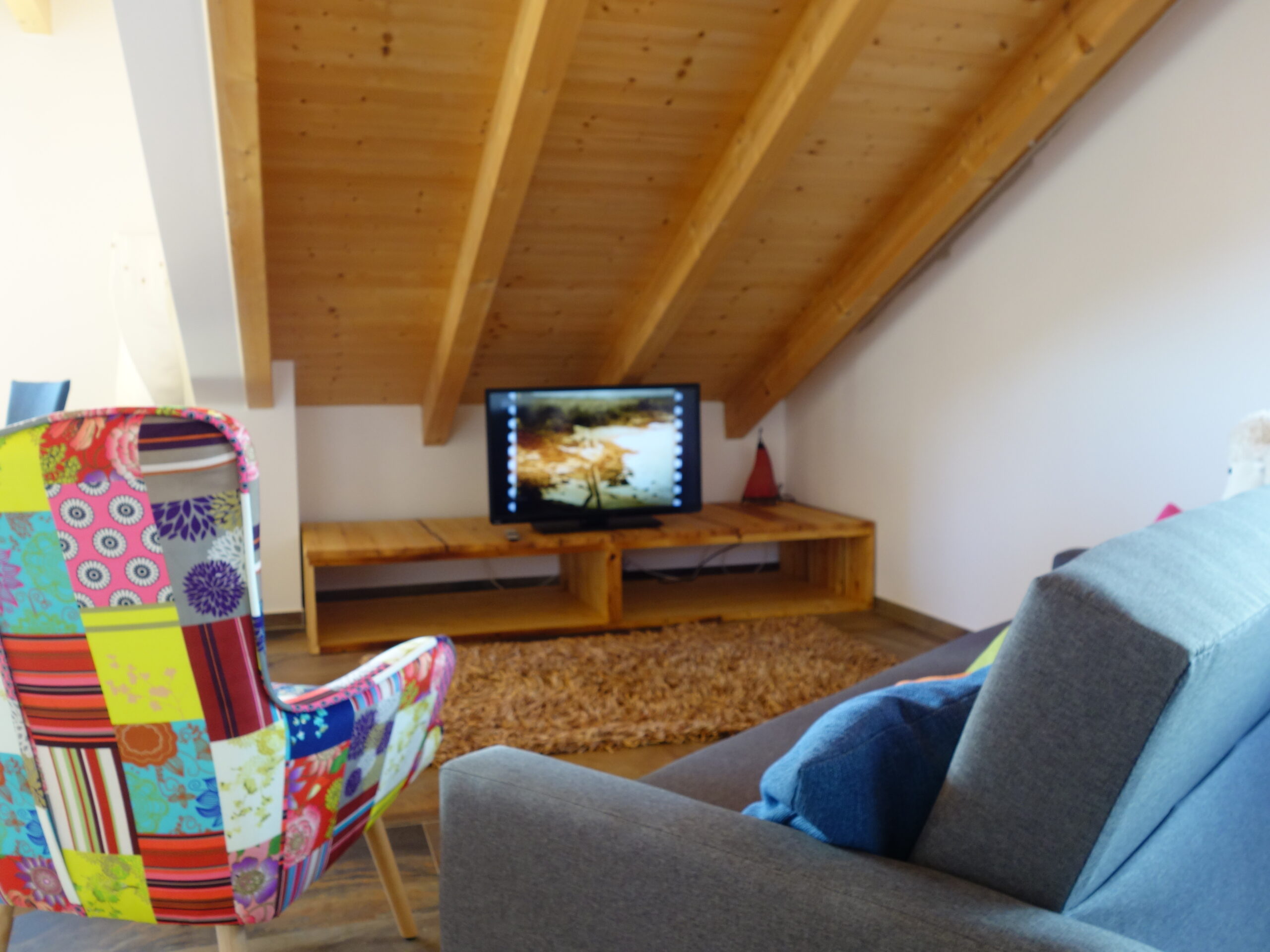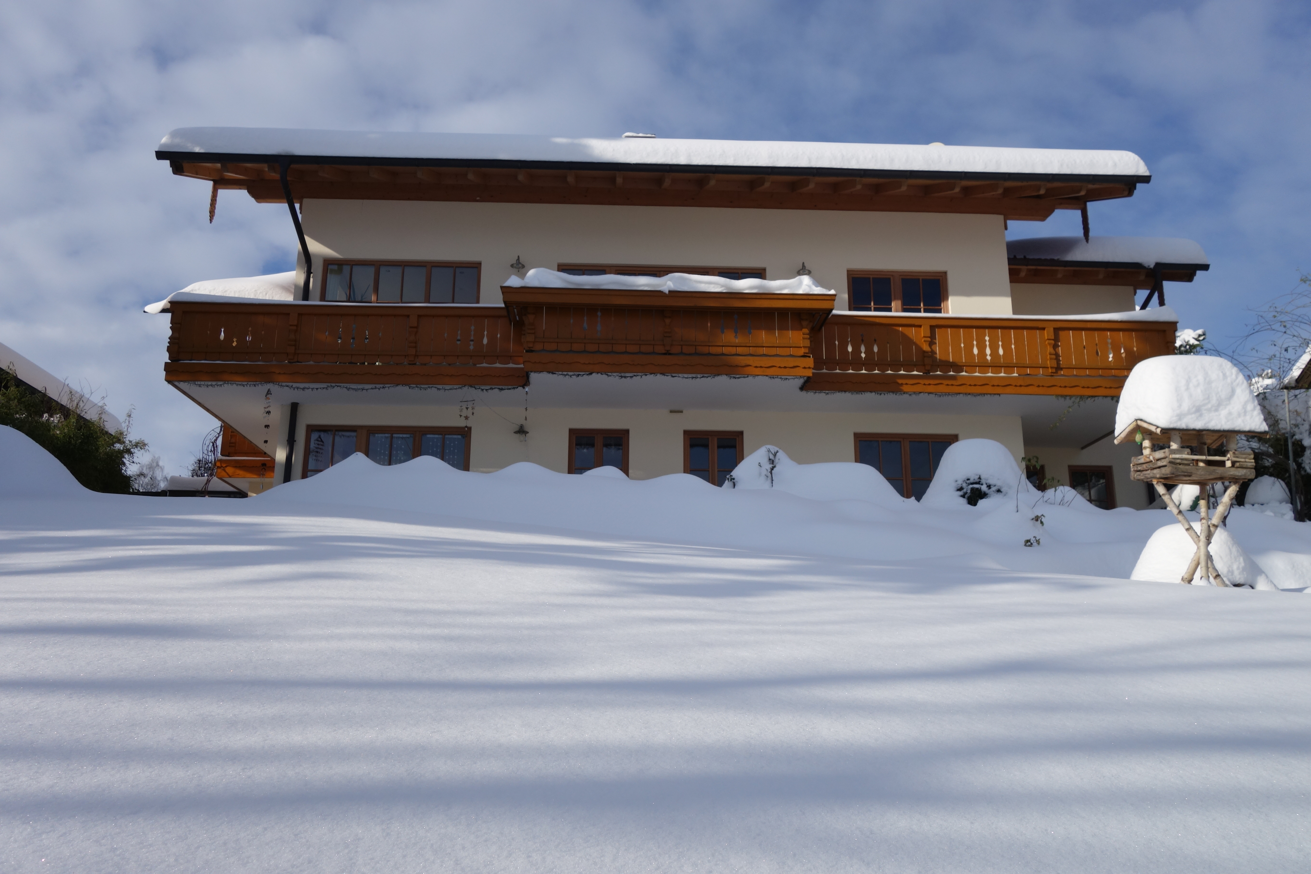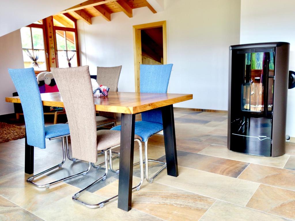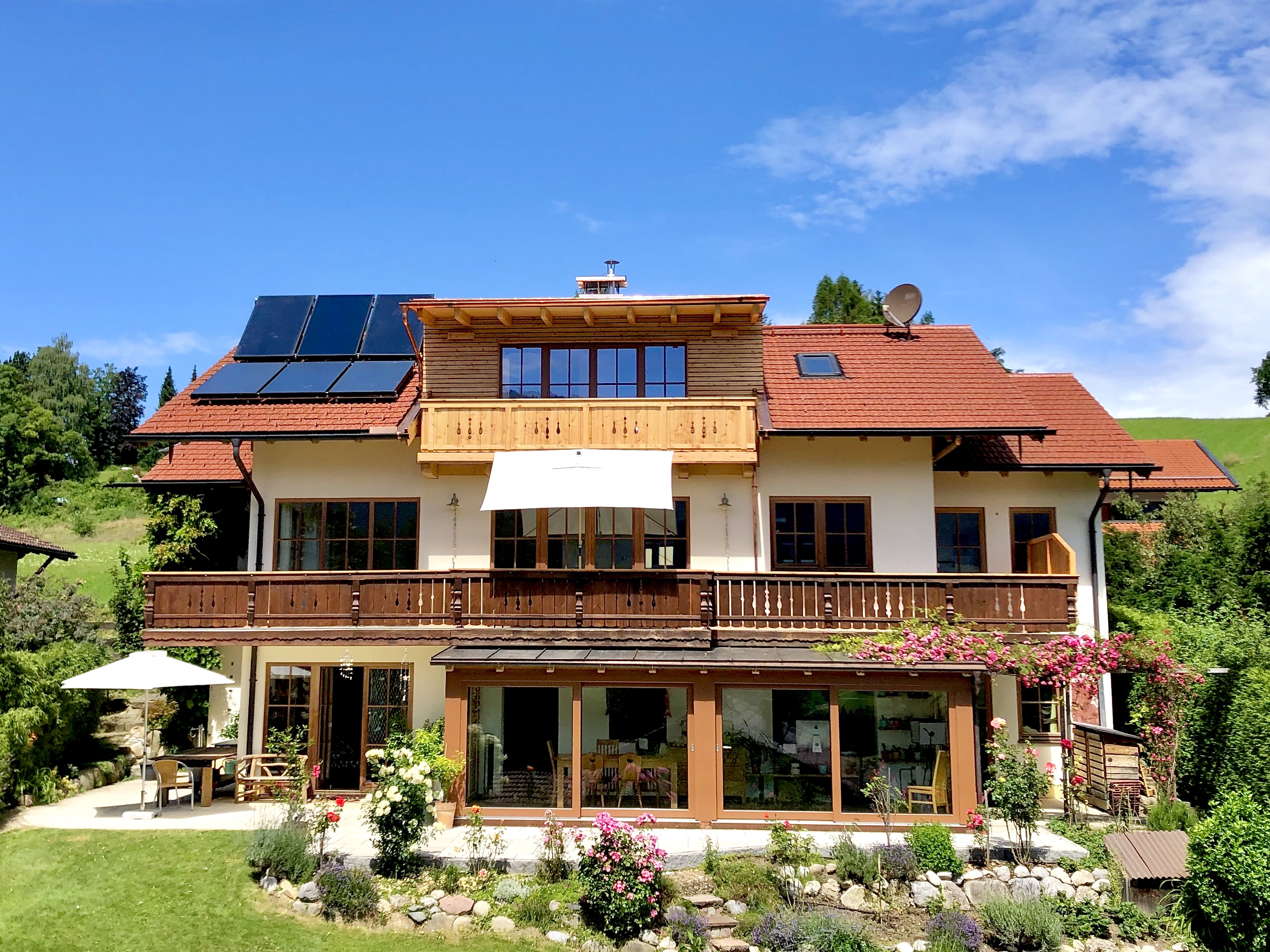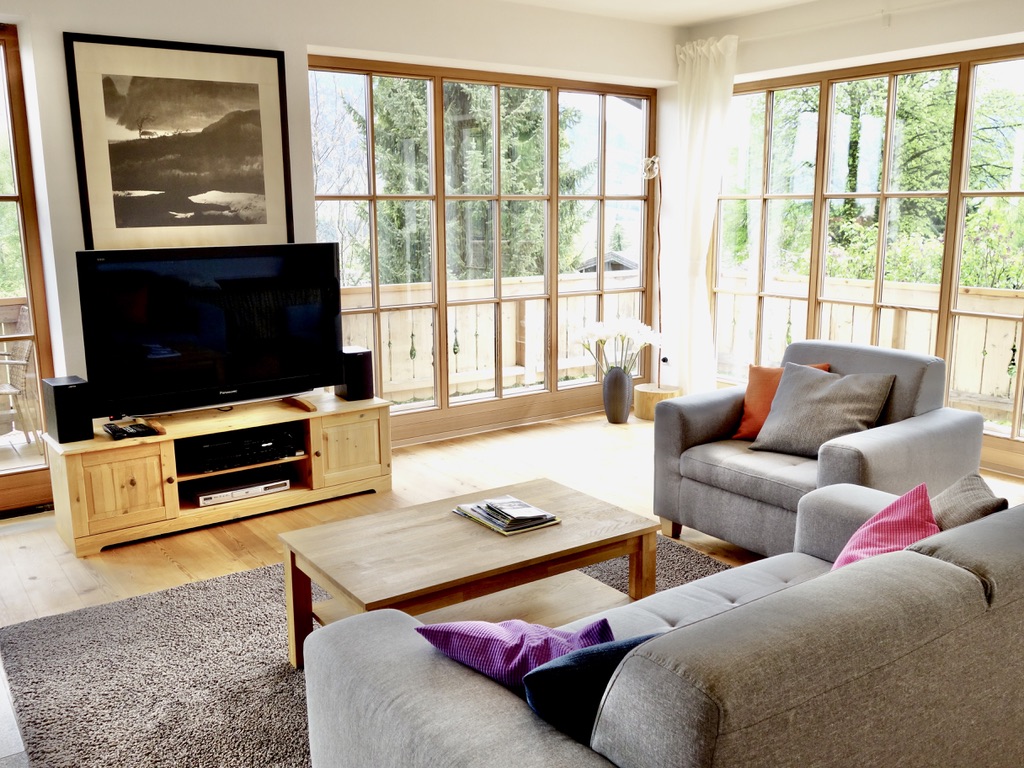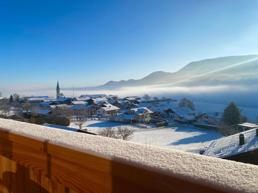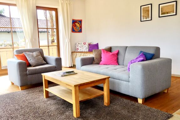 Die Wohnung ist sehr kompfortable eingerichtet, und bietet eine atemberaubende Aussicht von unserem Panorama Balkon auf die umliegenden Berge und die Samerberger Filze. Ausgestattet ist die Wohnung mit einer grossen Küche, maximal drei Schlafzimmer und einem Tagesbett, zu den Annehmlichkeiten gehören ein wärmender Kaminofen für die Winterzeit, Sat-TV, Stereoanlage, Waschmaschine, Spülmaschine ect und WLAN darf natürlich auch nicht fehlen. Ihr Auto steht bei uns geschützt im Carport.