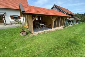Das Ferienhaus liegt in einer Alleinlage in der Nähe von Laufen.