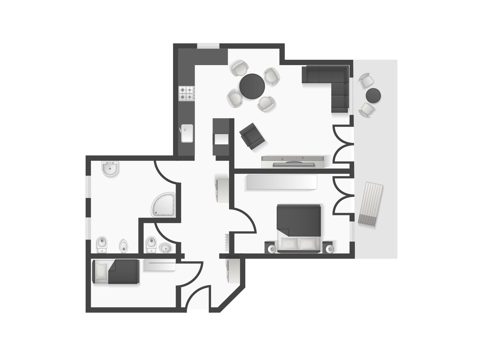 Apartment für 2-3 Personen im Dachgeschoss 70 m²