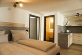 Die Wohnung ist ideal für 4–5 Personen und verfügt über zwei gemütliche Doppelbetten, eine moderne Küche, einen großen Esstisch sowie ein Wohnzimmer mit Schlafcouch. Aufgeteilt in drei Räume – ein Badezimmer, ein Schlafzimmer und der großzügige Wohnbereich – bietet sie genügend Platz und Flexibilität für Ihren Aufenthalt.