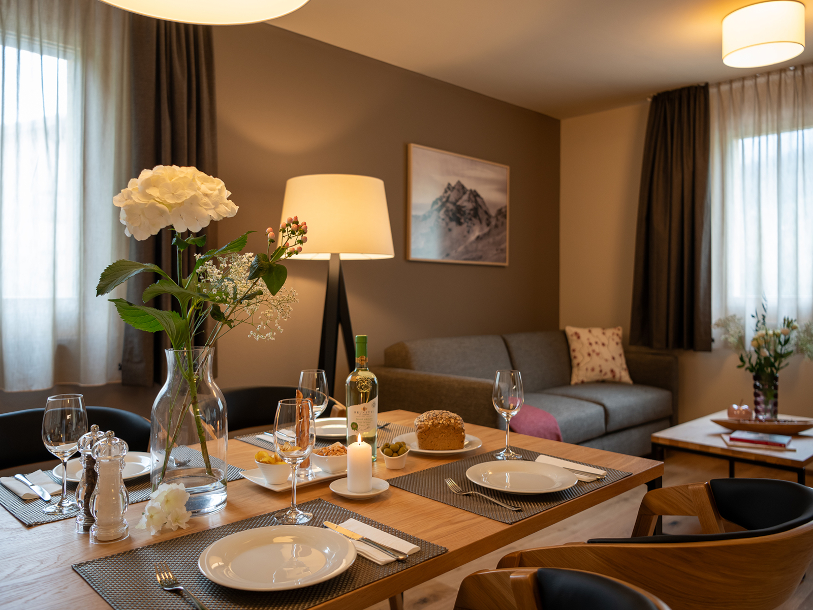 Zusatzleistungen (gegen Aufpreis): Brötchen-/Frühstück-/Picknick-Lieferung bis an die Wohnungstüre; Miete der Wintersportausrütung, Bikes/E-Bikes bei Intersport im Pradas