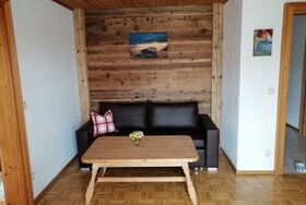 Die sonnige FeWo Südblick mit großem Südbalkon verfügt über eine gut ausgestattete Wohnküche, ein Wohnzimmer mit gemütlichem Sofa und TV. Das Schlafzimmer ist mit einem Doppelbett 180x200 cm ausgstattet.