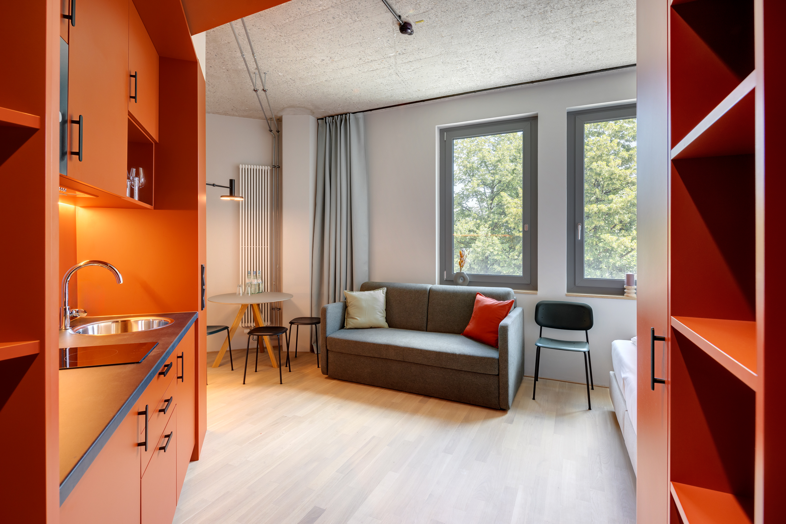 Unsere Studio Family bestehen aus einem Studio Standard sowie einem Studio Superior, die mit einer Verbindunstür zugänglich sind. Im Studio Family haben bis zu 6 Personen Platz, was es ideal für Familien macht. Neben zwei bequemen Doppelbetten für den erholsamen Schlaf, verfügt das Studio Family zusätzlich über ein Schlafsofa oder Stockbettsofa. Die geschmackvolle Einrichtung und das zeitgemäße Design schaffen eine angenehme Atmosphäre. Die Küchenzeile ist mit modernen Geräten wie Herd, Kühlschrank, eine Mikrowelle und Spülmaschine ausgestattet und bietet Ihnen die Möglichkeit, Ihre Lieblingsgerichte zuzubereiten. Im Badezimmer gibt es eine stilvolle begehbare Dusche, einen großen Handtuchheizkörper sowie einen großen Spiegel mit umlaufender LED-Beleuchtung über dem Waschbecken, der dem Raum Helligkeit und Weite verleiht.