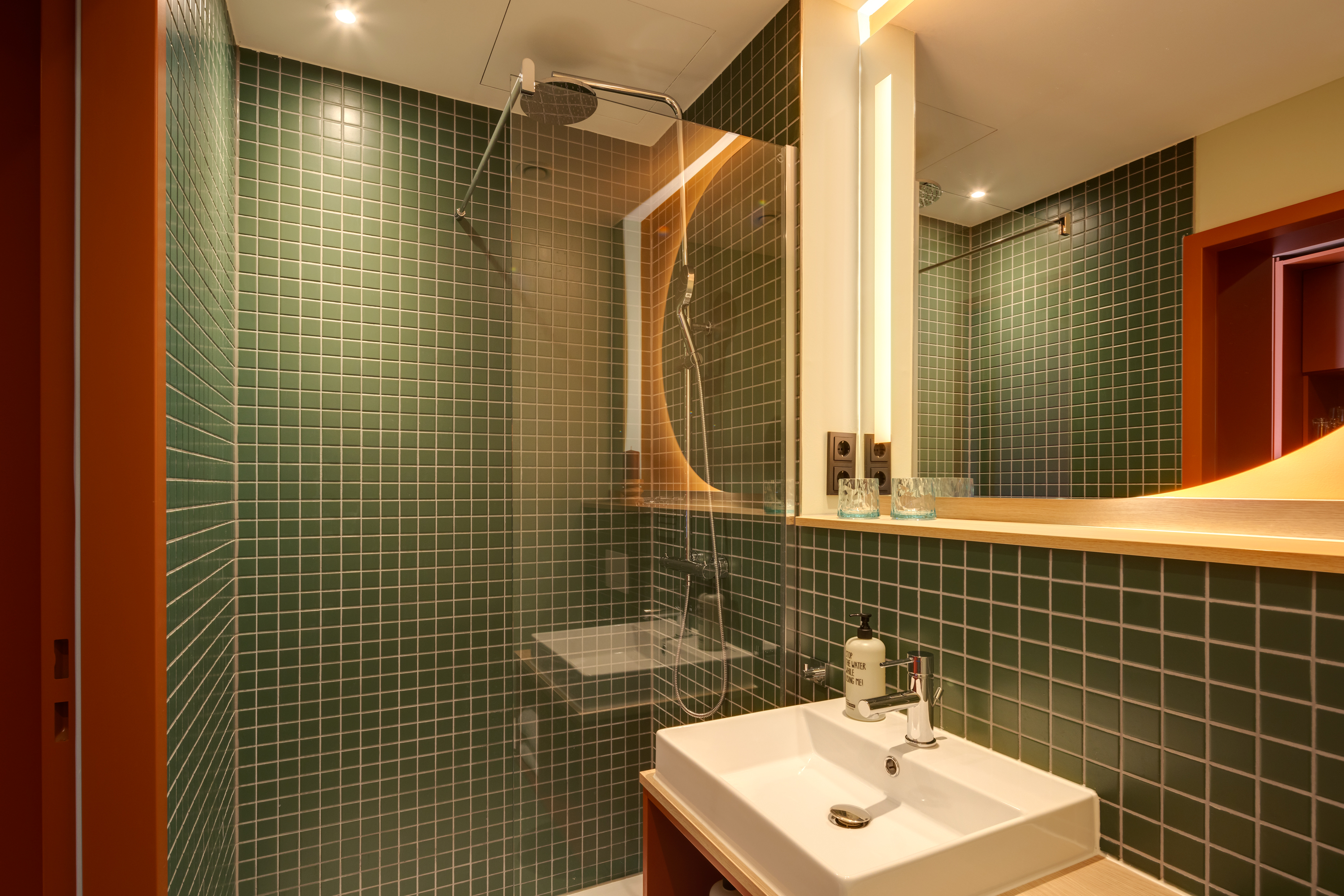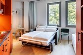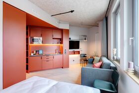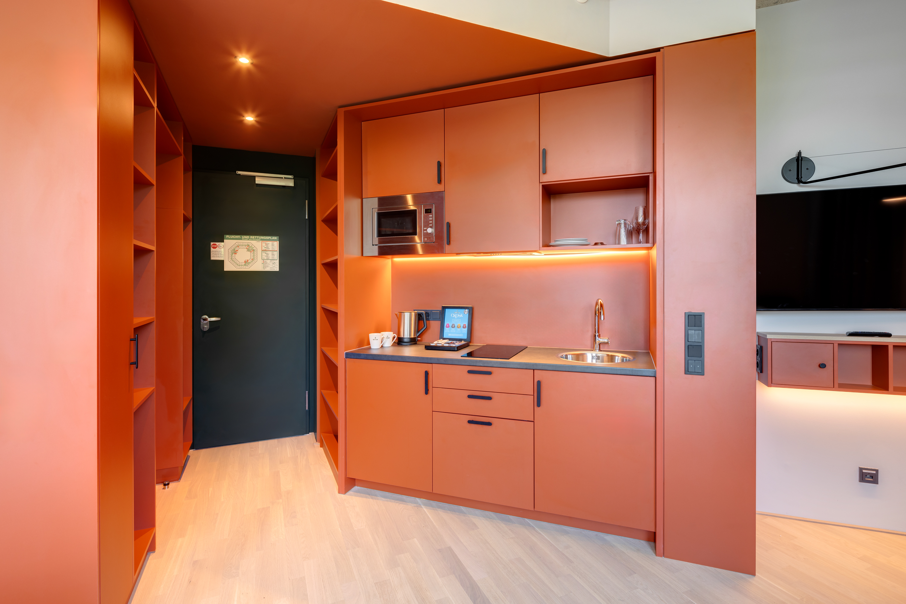 Das Raumwunder: Das Studio Superior bietet viel Platz für bis zu 4 Personen, was es auch ideal für Familien macht. Neben einen bequemen Doppelbett für den erholsamen Schlaf, verfügt das Studio zusätzlich über ein Schlafsofa oder Stockbettsofa. Egal ob Sie als Familie reisen oder einfach nur mehr Platz benötigen, das Studio Superior bietet Ihnen den Komfort und die Flexibilität, die Sie brauchen. Die geschmackvolle Einrichtung und das zeitgemäße Design schaffen eine angenehme Atmosphäre. Die Küchenzeile ist mit modernen Geräten wie Herd, Kühlschrank, eine Mikrowelle und Spülmaschine ausgestattet und bietet Ihnen die Möglichkeit, Ihre Lieblingsgerichte zuzubereiten. Im Badezimmer gibt es eine stilvolle begehbare Dusche, einen großen Handtuchheizkörper sowie einen großen Spiegel mit umlaufender LED-Beleuchtung über dem Waschbecken, der dem Raum Helligkeit und Weite verleiht. Für Longstay Aufenthalte.