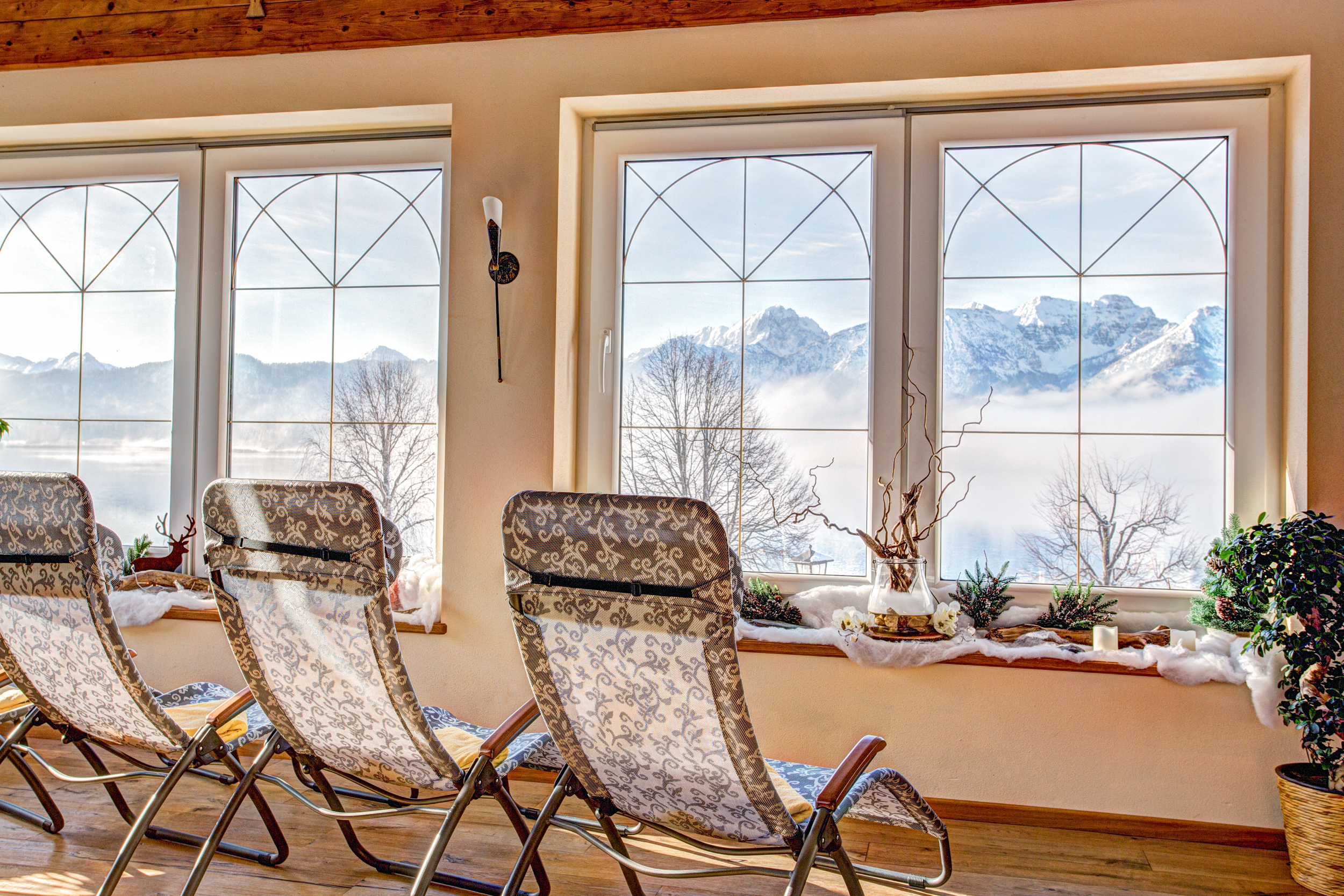Genießen Sie Ihren Urlaub in vollen Zügen! In unseren Alpina-Appartements und -Ferienwohnungen im alpinen Design mit hochwertigster Ausstattung. Selbstverständlich können Sie unser reichhaltiges Frühstücksbuffet dazu buchen oder unseren Brötchenservice in Anspruch nehmen. 3-Zimmer-Wohnung Alpina (ca. 70 qm), Wohnzimmer und 2 getrennte Schlafzimmer, Bad mit FBH und begehbarer Dusche/WC & Fön, Küchenzeile (Geschirrspüler, Kühlschrank, Mikrowelle, Wasserkocher, Kaffeemaschine, Toaster uvm.), Radio/CD/ MP3, 2 x TV, W-LAN, Internetanschluss, Telefon und Balkon mit sensationellem See- und Bergblick (Penthouse!) für bis zu 4 Personen (inkl. Handtücher, Bettwäsche und Endreinigung).