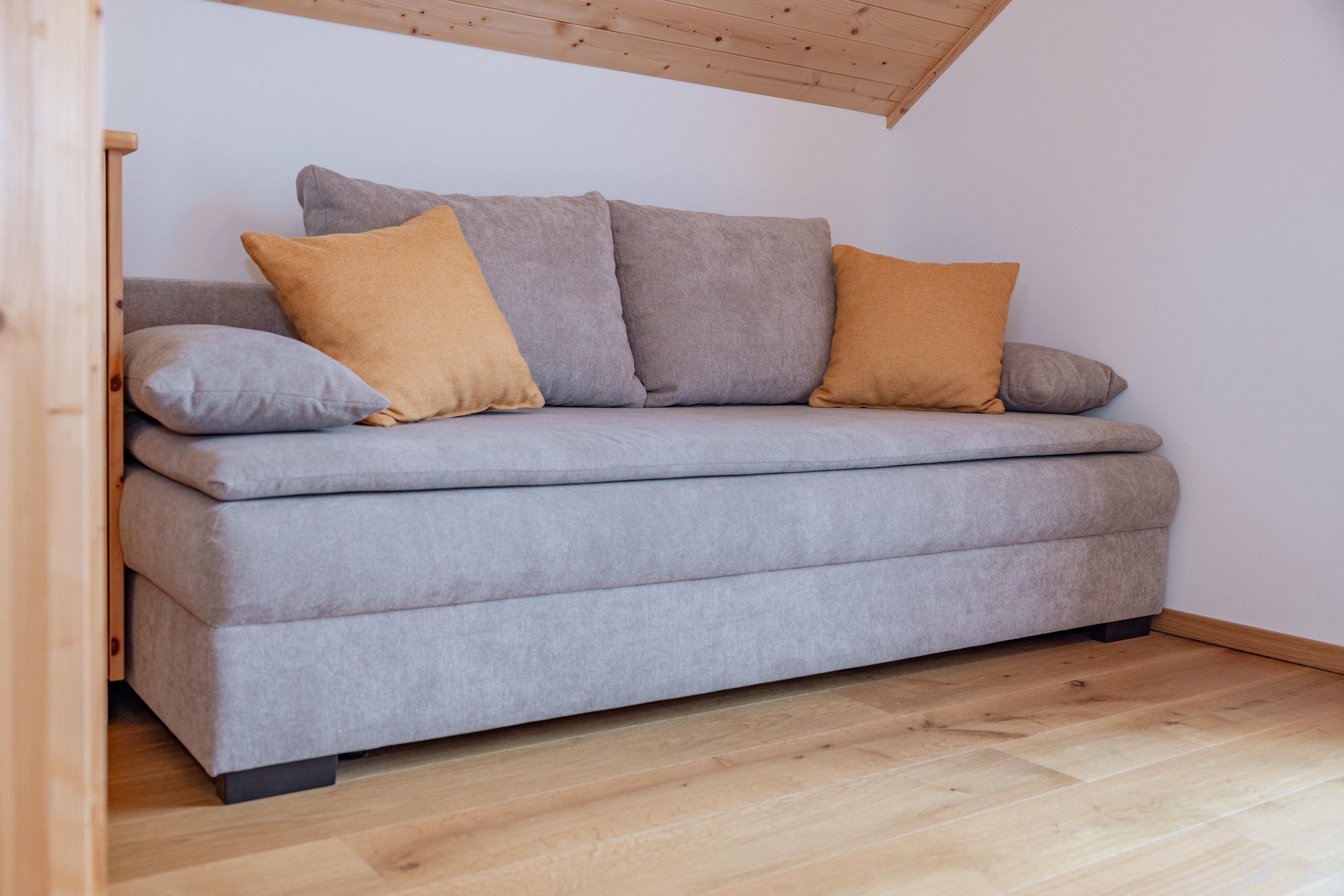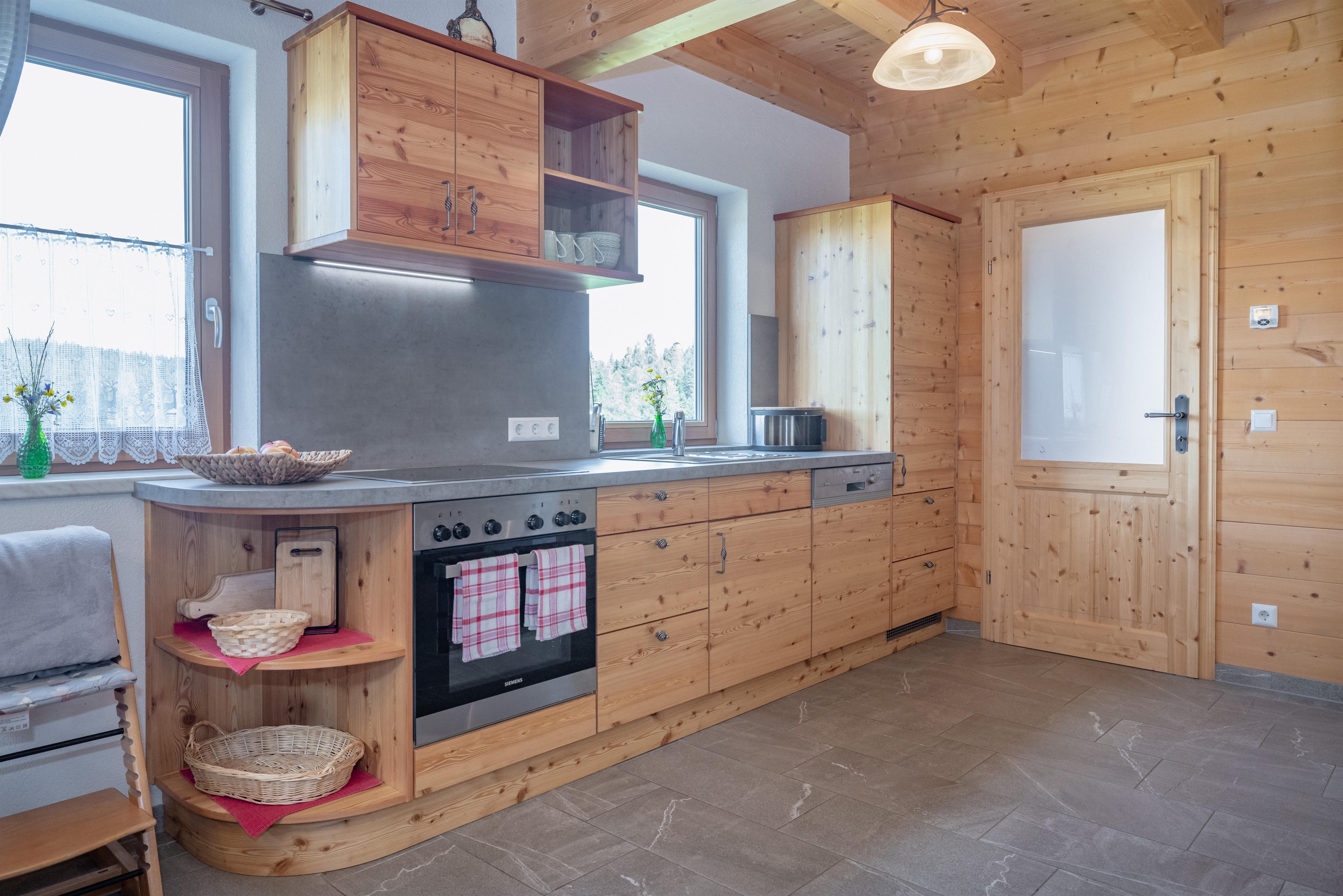 Unsere liebevoll eingerichtete Hütte wurde mit regionalen Materialien erbaut und verfügt über zwei gemütliche Zirbenschlafzimmer. Ein Schlafzimmer ist mit einem Doppelbett und einer ausziehbaren Couch ausgestattet. Das zweite Schlafzimmer bietet ein Doppelbett sowie ein Stockbett mit Matratzen in den Maßen 90 x 200 cm und 140 x 200 cm. Sämtliche Einrichtungsgegenstände wurden aus regionalem Zirbenholz gefertigt. Die Küche wurde von einem Tischler aus dem Nachbarort eigens für die Hütte angefertigt und besticht durch ihre hochwertige Verarbeitung.