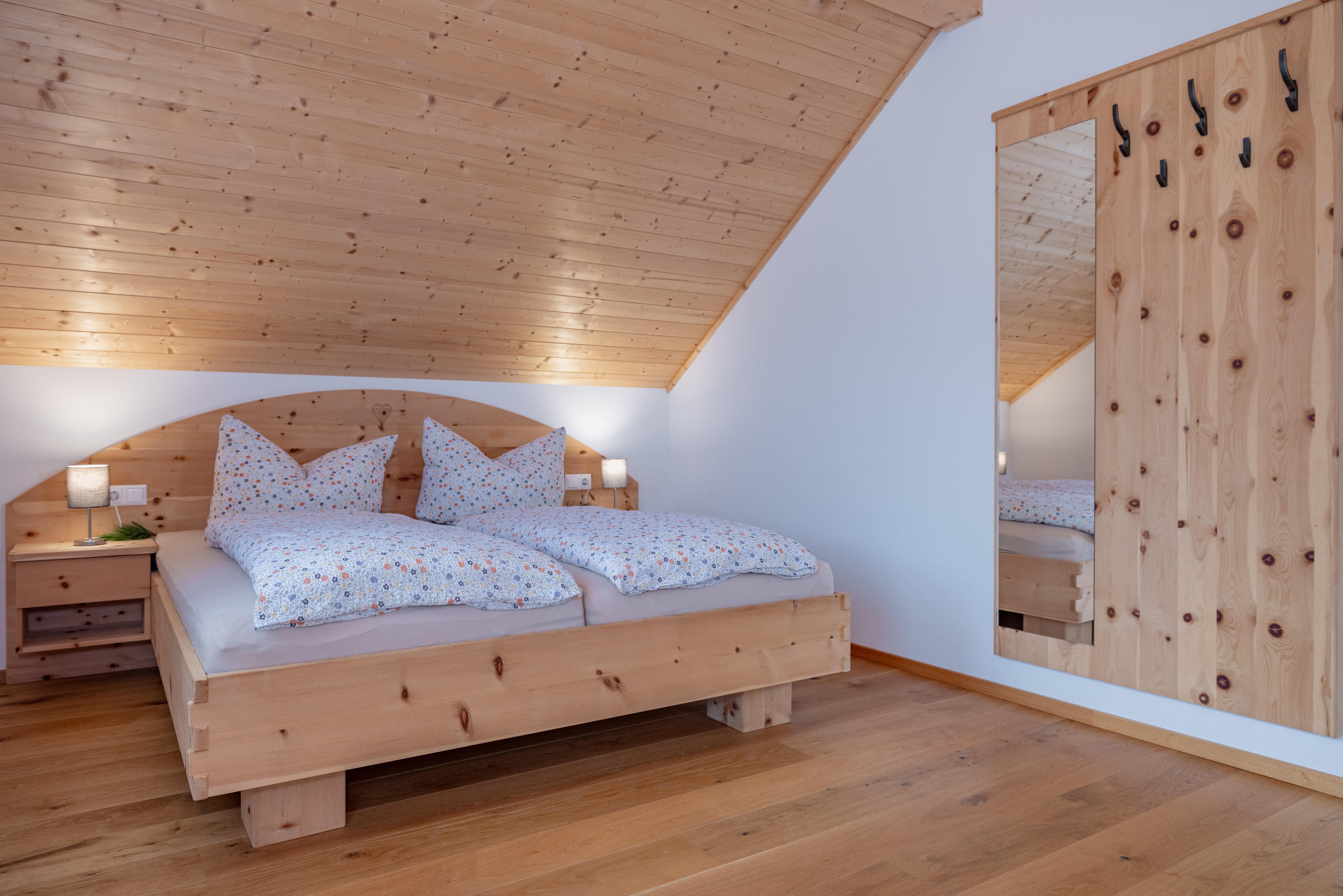 Zirbenholz ist nicht nur ein Baum, sondern ein Wundermittel für das Raumklima. Es verströmt einen angenehmen Duft und seine gesundheitlichen Vorteile sind seit langem bekannt. Studien zeigen, dass Zirbenholz im Schlafzimmer den Schlaf verbessert und zur Entspannung beiträgt. Erlebt diese Vorteile in unseren beiden liebevoll gestalteten Zirben-Schlafzimmern, die Platz für bis zu 8 Personen bieten.
