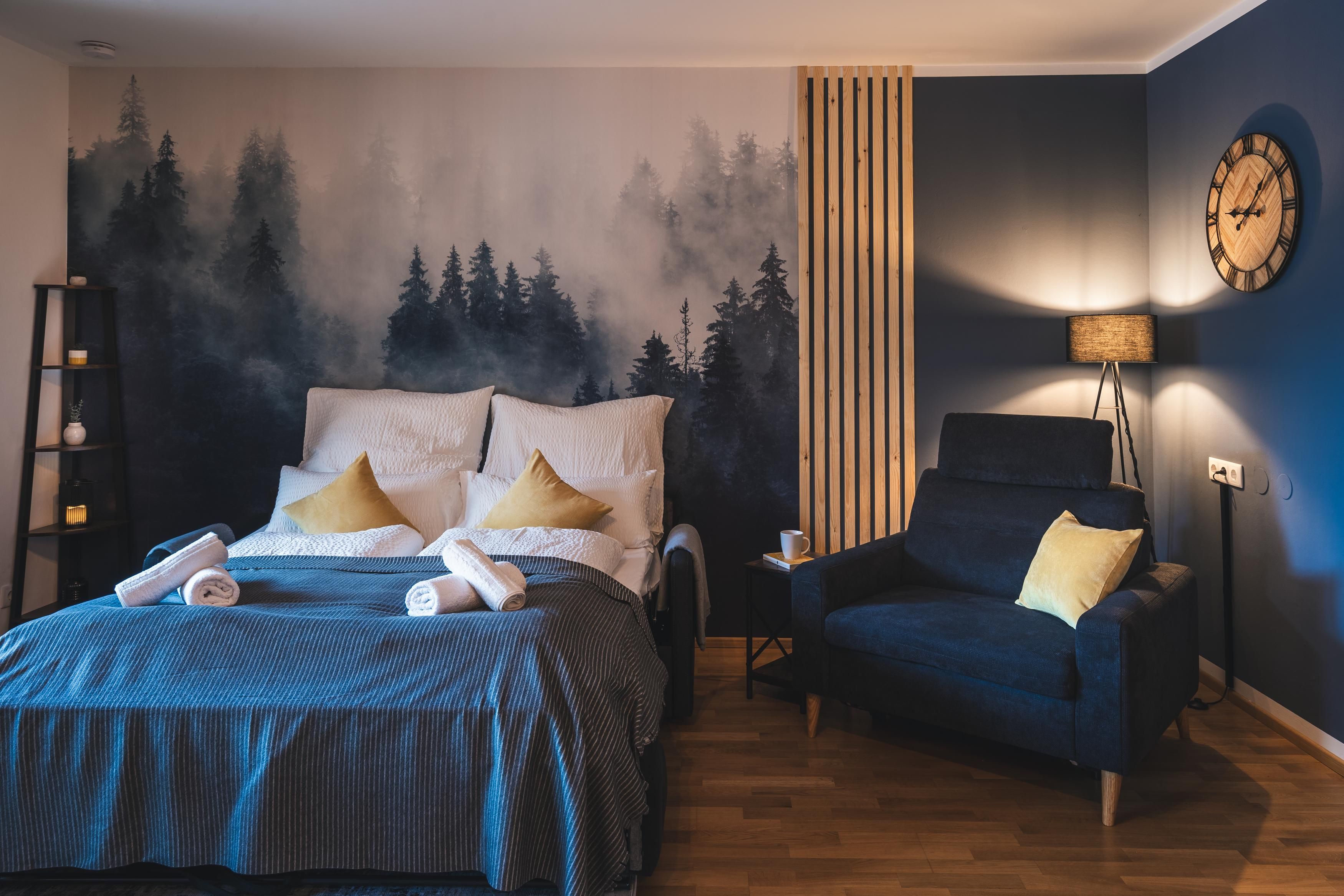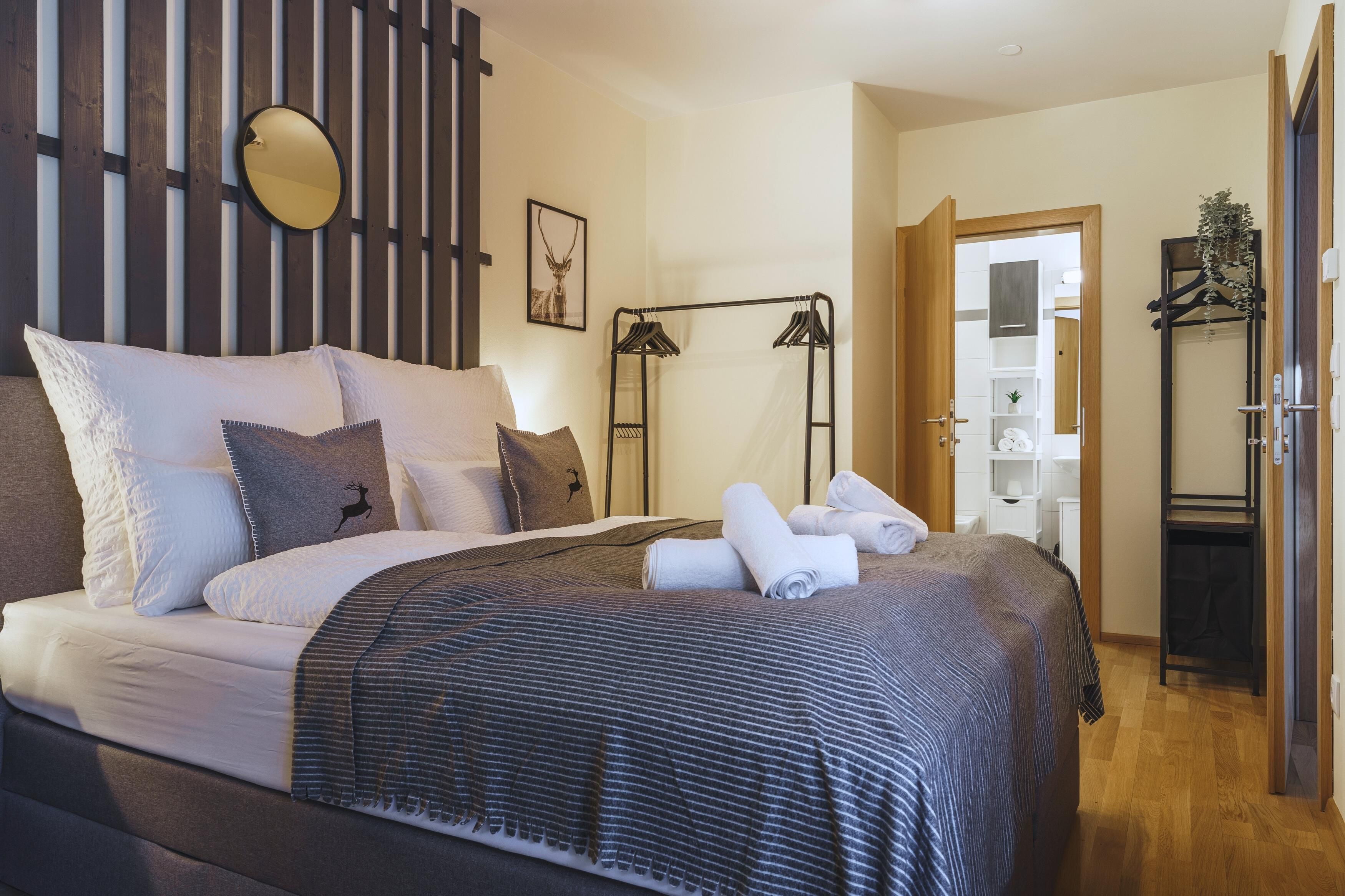 Im Anschluss könnt ihr den erfolgreichen Tag auf dem Berg bei einem Absacker auf der großzügigen Terrasse Revue passieren lassen, bevor ihr erschöpft ins bequeme Boxspringbett fällt und erholsamen Schlaf genießt.