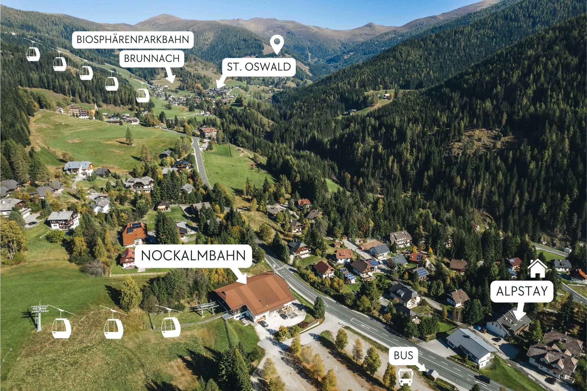 Unsere Apartments befinden sich auf etwa 1.250 m Seehöhe zwischen Bad Kleinkirchheim (ca. 5 Fahrminuten) und St. Oswald (2 Fahrminuten) - inmitten des UNESCO Biosphärenpark Kärntner Nockberge, einem wahren Naturparadies! Natur-Aktiv Urlaubern bieten die Apartments die perfekte Ausgangslage um die umliegenden Wander- und Mountainbike-Routen ausgiebig zu erkunden. Gestärkt wird sich dann bei der ein oder anderen urigen Hütte mit traditionellen regionalen Schmankerln wir zum Beispiel den Kärntner Kasnudln.