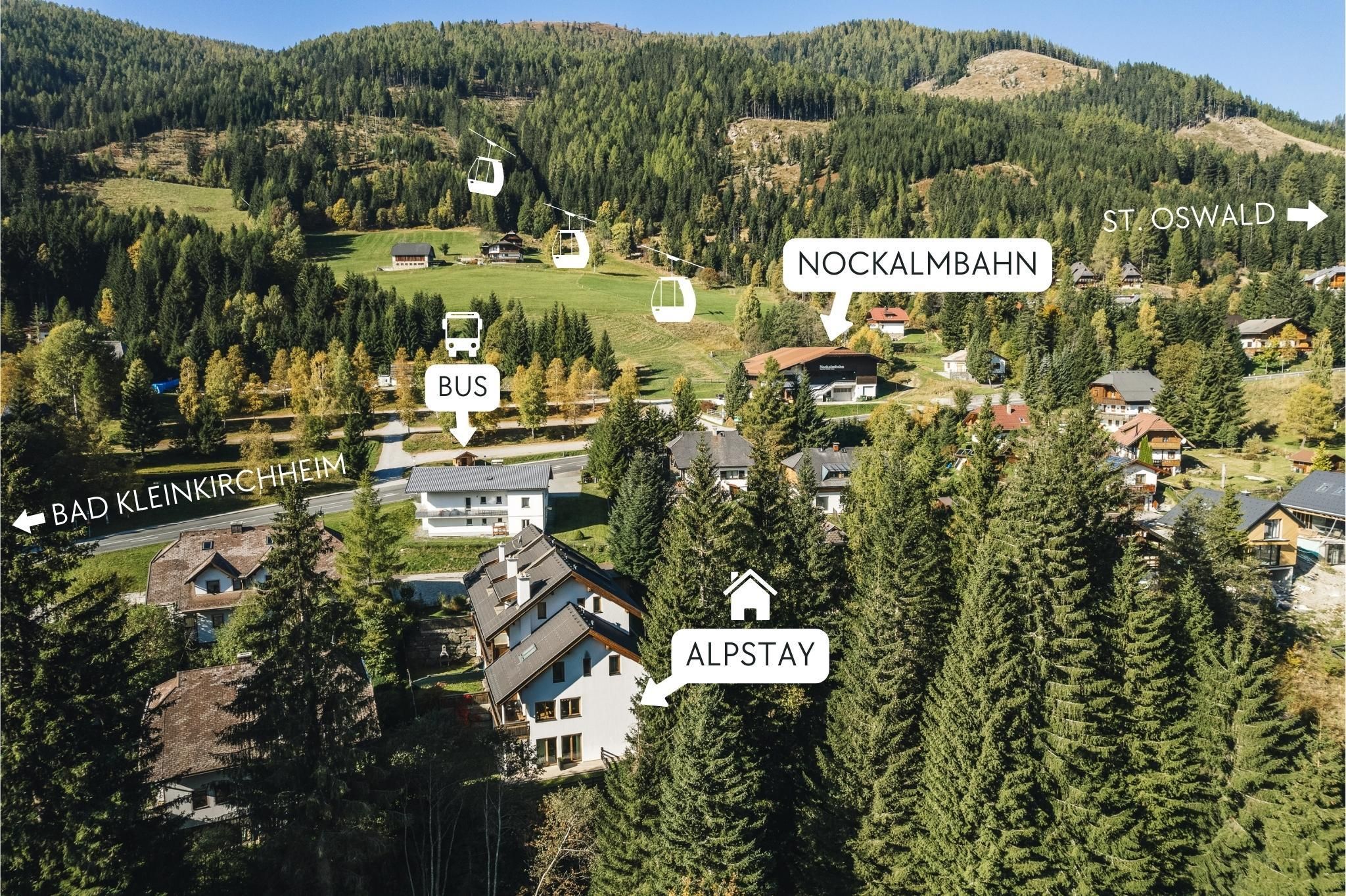 Unsere Apartments befinden sich auf etwa 1.250 m Seehöhe zwischen Bad Kleinkirchheim (ca. 5 Fahrminuten) und St. Oswald (2 Fahrminuten) - inmitten des UNESCO Biosphärenpark Kärntner Nockberge, einem wahren Naturparadies! Natur-Aktiv Urlaubern bieten die Apartments die perfekte Ausgangslage um die umliegenden Winter-Wanderwege und Pisten ausgiebig zu erkunden. Die Nockalmbahn befindet sich übrigens genau gegenüber - Ski-In & Ski-Out quasi. Nach einigen rasanten Abfahrten auf der Piste könnt ihr auch dann am besten in der ein oder anderen urigen Hütte mit traditionellen regionalen Schmankerln wir zum Beispiel den Kärntner Kasnudln stärken.