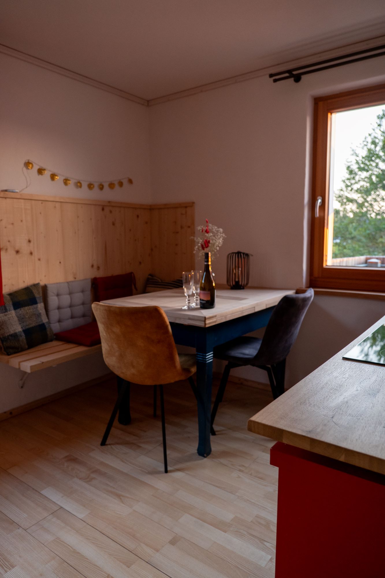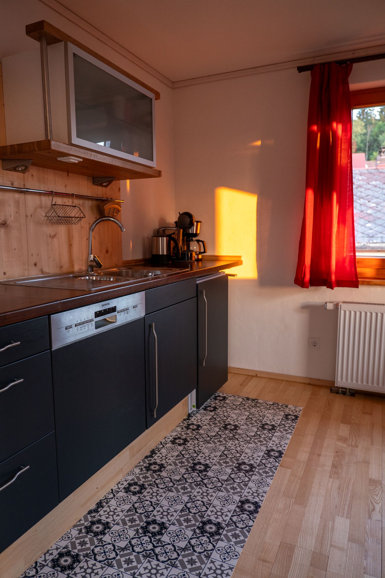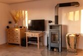 Das 73 qm Apartment im 1. OG des Landhauses im skandinavischen Stil ist mit natürlichen Materia-lien ausgebaut und schafft mit seinem Kaminofen Wohlfühlatmosphäre nach einer Wanderung oder Fahrradtour. Es bietet in seinen großzügigen und hellen Räumlichkeiten Platz für 5 Personen in zwei Schlafzimmern, einem Bad mit barrierefreier Dusche, einer voll ausgestatteten Küche und einem großen Wohnzimmer mit Fernseher und Kaminofen sowie einem kleinen Balkon. Ab August 2024 wird zusätzlich ein kleines Gärtchen mit Sitzgruppe, Schaukel, Babyschaukel, Sandkasten und Lagerfeuerstelle zur Mitbenutzung bereitstehen. Für Radfahrer steht eine abschließbare Abstell-möglichkeit zur Verfügung. Bettwäsche und Handtücher sind inklusive.