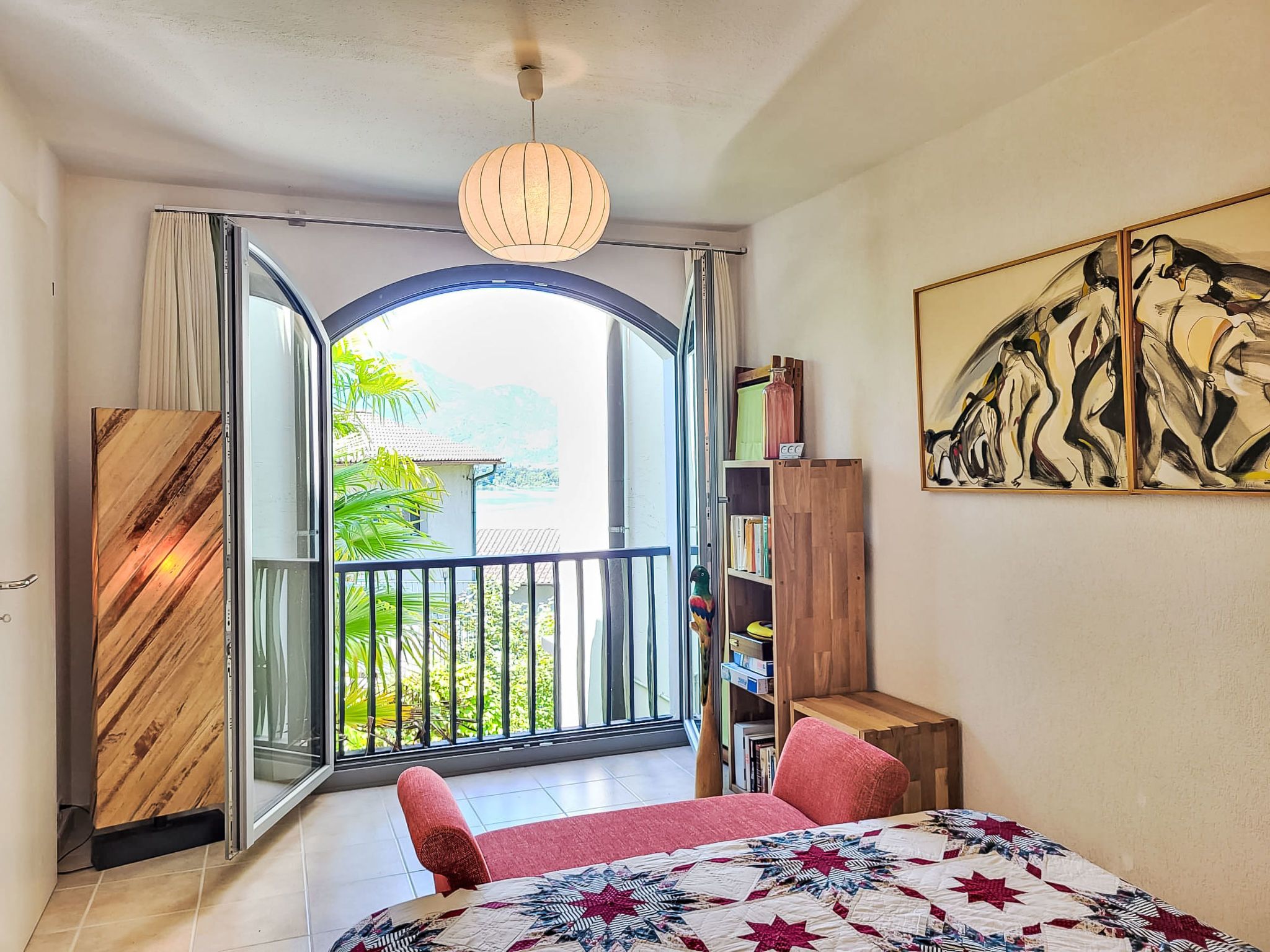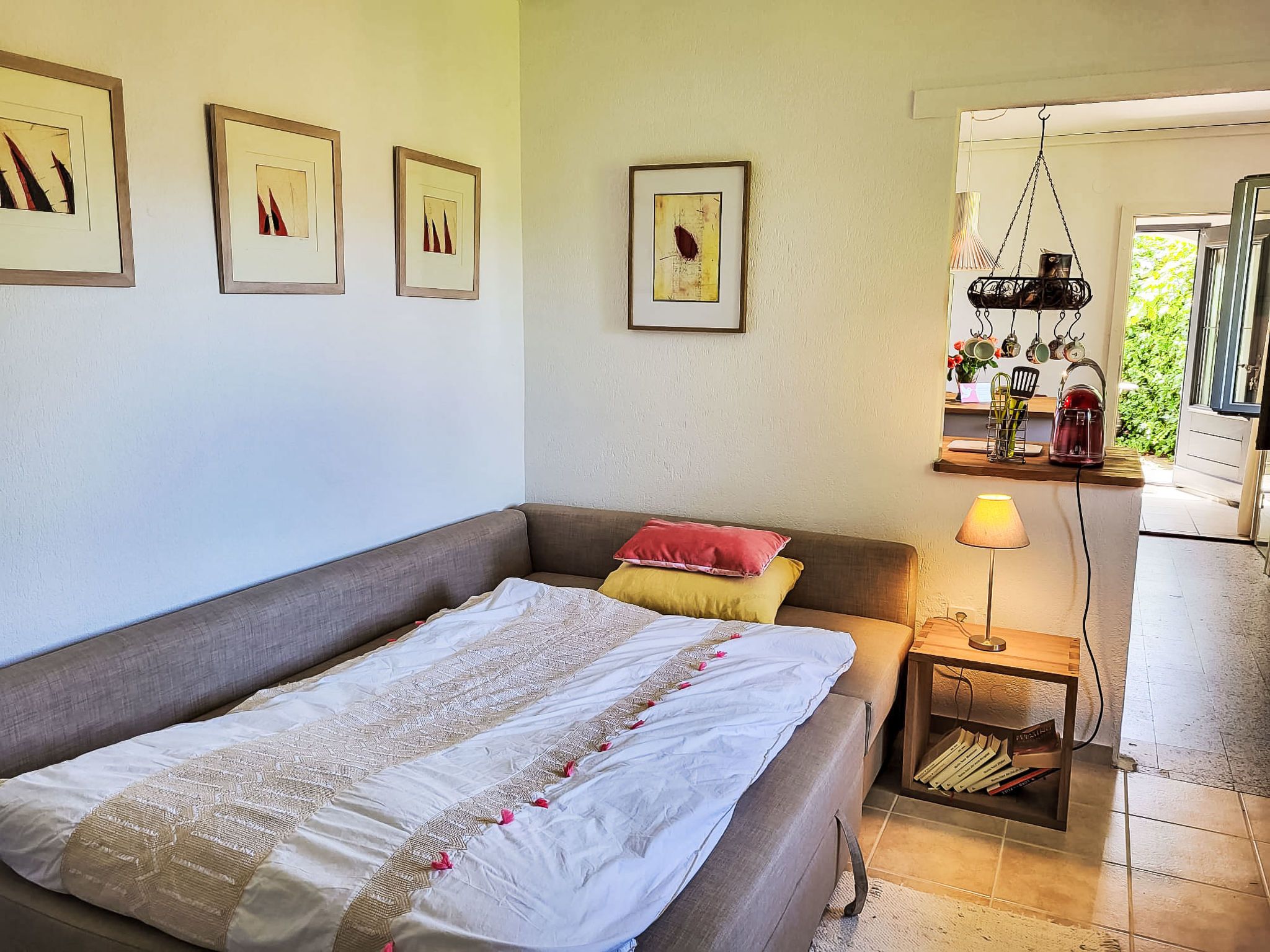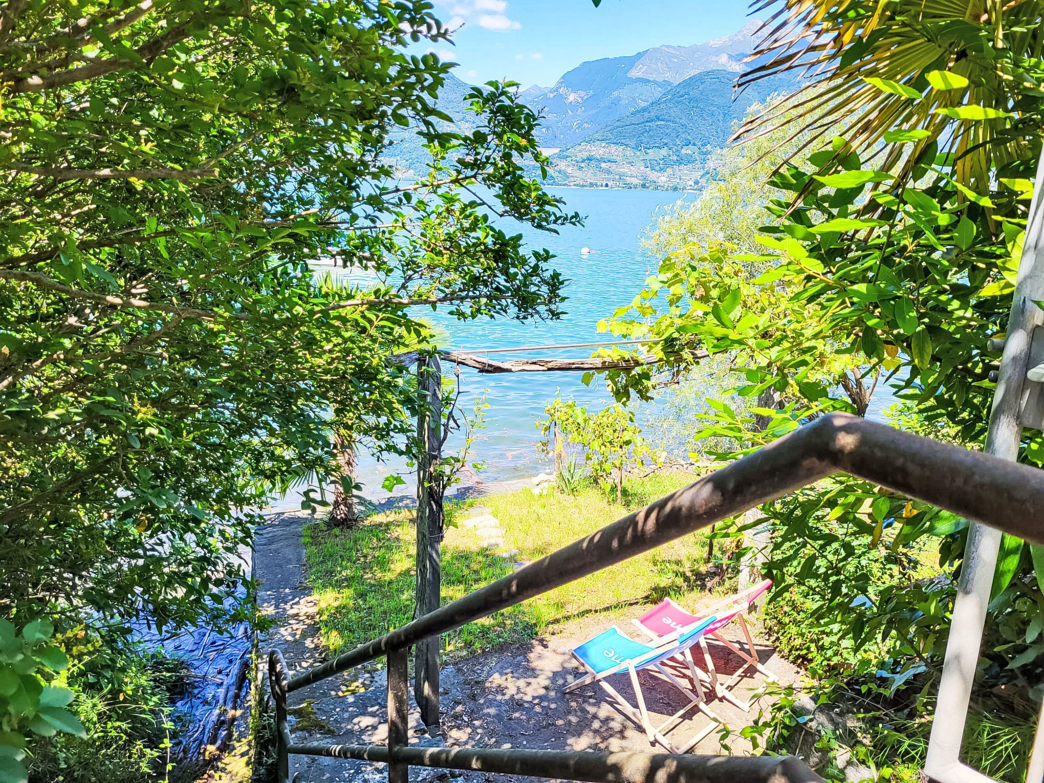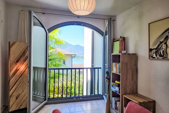 Ronchitt, 2-Zimmer-Wohnung 42 m2, im ebenerdigen Untergeschoss. Objekt geeignet für 2 Erwachsene + 1 Kind. Schön und gemütlich eingerichtet: Wohnzimmer mit 1 Diwanbett (140 cm, Länge 200 cm), TV und Internationale TV-Sender (Flachbildschirm), Heizofen. Ausgang zum Gartensitzplatz. 1 Doppelzimmer mit 1 Doppelbett (1 x 160 cm, Länge 200 cm). Offene Küche (Backofen, 4 Induktionskochplatten, Toaster, Wasserkocher, elektrische Kaffeemaschine, Kapseln für die Kaffeemaschine (Chicco Doro) extra) mit Bar. Dusche/WC. Natursteinboden. Gartensitzplatz. Terrassenmöbel, Liegestühle. Sehr schöne Panoramasicht auf den See und die Berge. Zur Verfügung: Waschmaschine, Kinderhochstuhl, Babybett bis 2 Jahre (extra). Internet (WLAN, gratis). Parkplatz. Bitte beachten: Nichtraucher-Unterkunft. Maximal 1 Haustier/Hund erlaubt. Eigener Eingang, kein Fahrstuhl. NL-