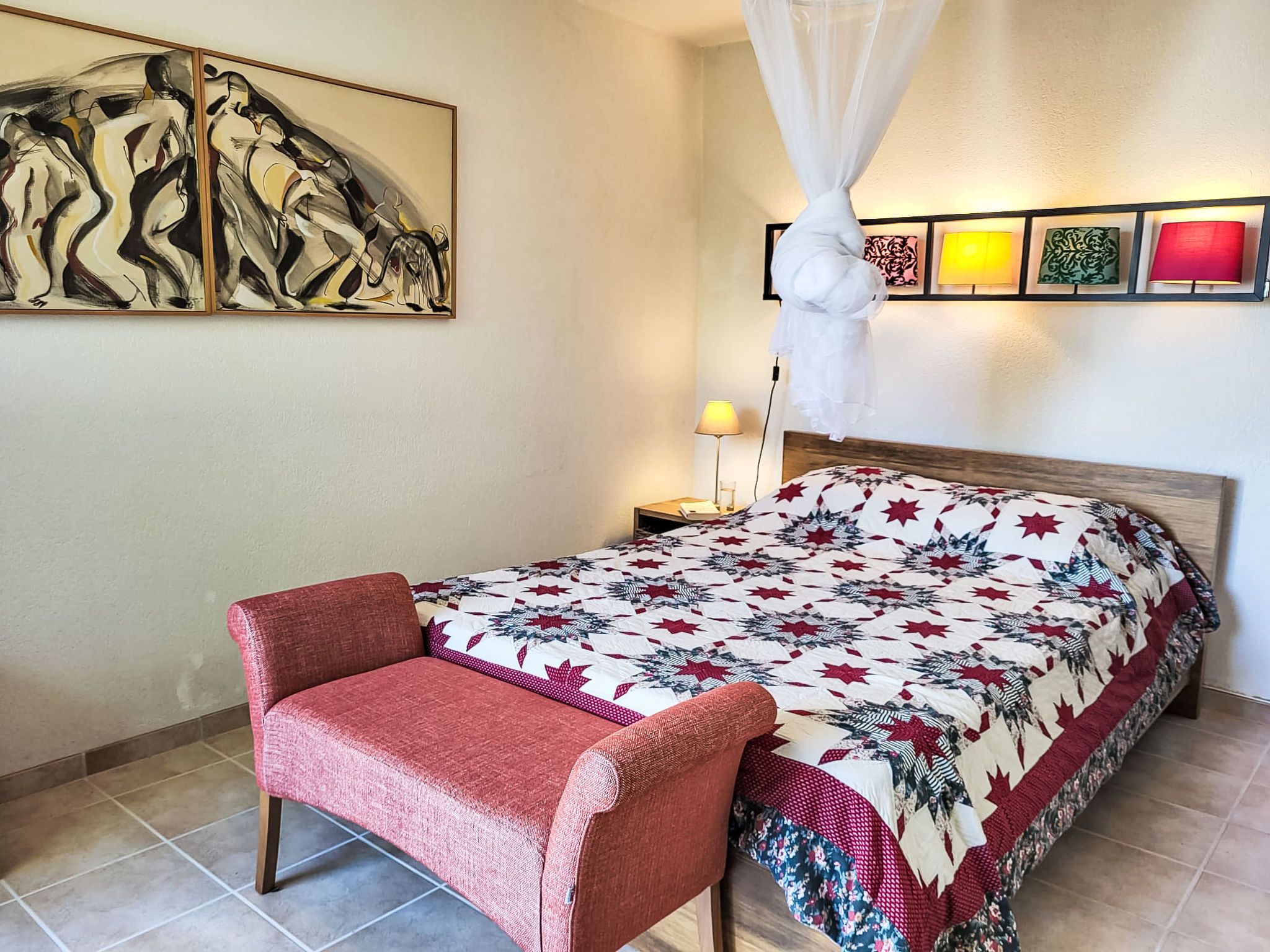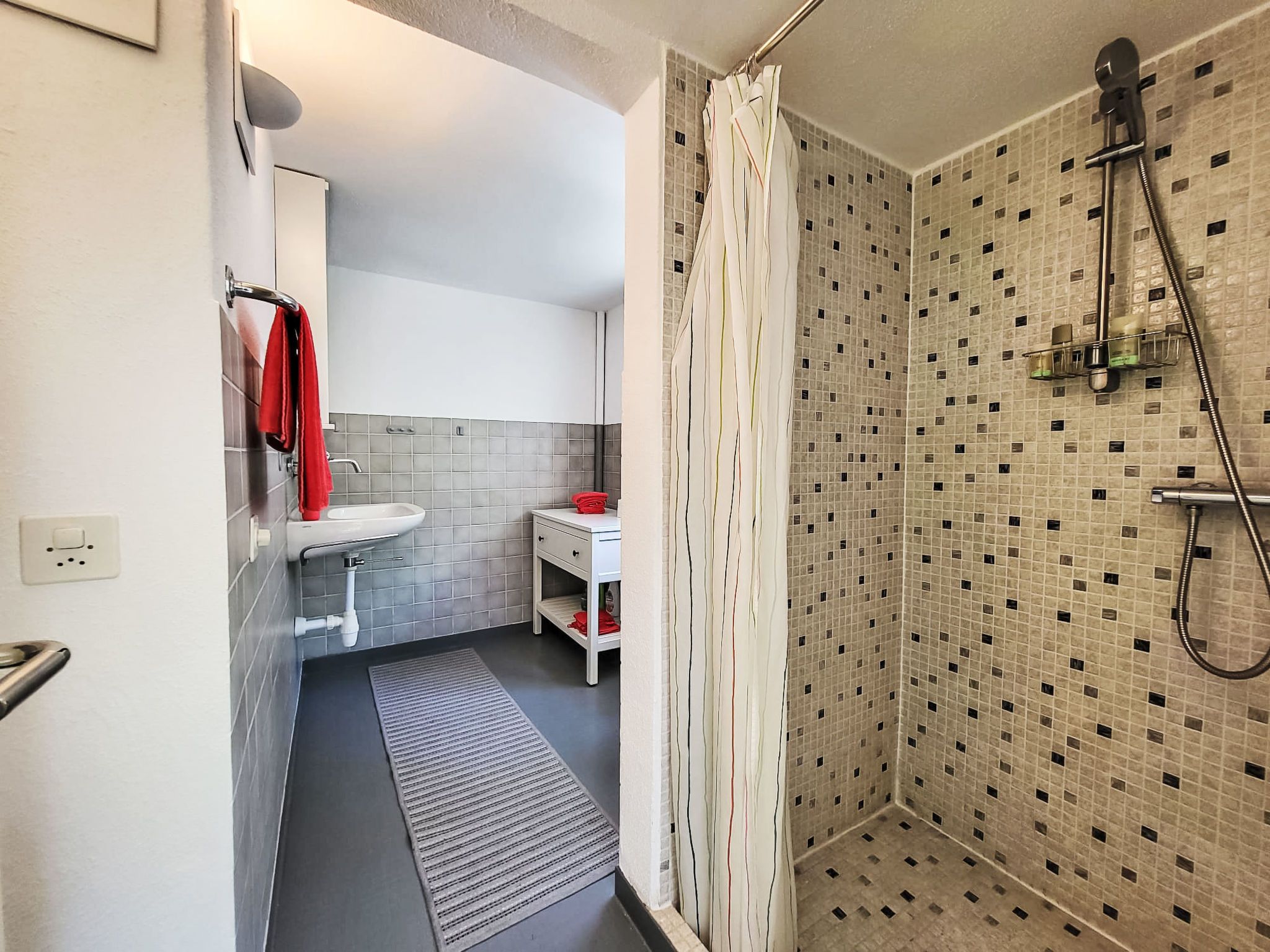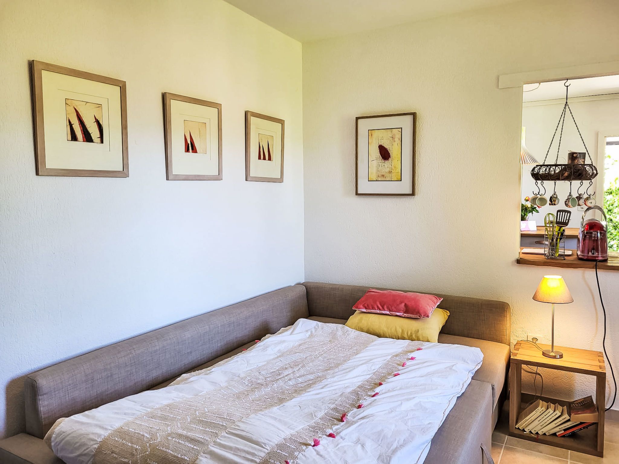 Ronchitt, 2-Zimmer-Wohnung 42 m2, im ebenerdigen Untergeschoss. Objekt geeignet für 2 Erwachsene + 1 Kind. Schön und gemütlich eingerichtet: Wohnzimmer mit 1 Diwanbett (140 cm, Länge 200 cm), TV und Internationale TV-Sender (Flachbildschirm), Heizofen. Ausgang zum Gartensitzplatz. 1 Doppelzimmer mit 1 Doppelbett (1 x 160 cm, Länge 200 cm). Offene Küche (Backofen, 4 Induktionskochplatten, Toaster, Wasserkocher, elektrische Kaffeemaschine, Kapseln für die Kaffeemaschine (Chicco Doro) extra) mit Bar. Dusche/WC. Natursteinboden. Gartensitzplatz. Terrassenmöbel, Liegestühle. Sehr schöne Panoramasicht auf den See und die Berge. Zur Verfügung: Waschmaschine, Kinderhochstuhl, Babybett bis 2 Jahre (extra). Internet (WLAN, gratis). Parkplatz. Bitte beachten: Nichtraucher-Unterkunft. Maximal 1 Haustier/Hund erlaubt. Eigener Eingang, kein Fahrstuhl. NL-