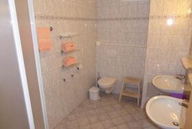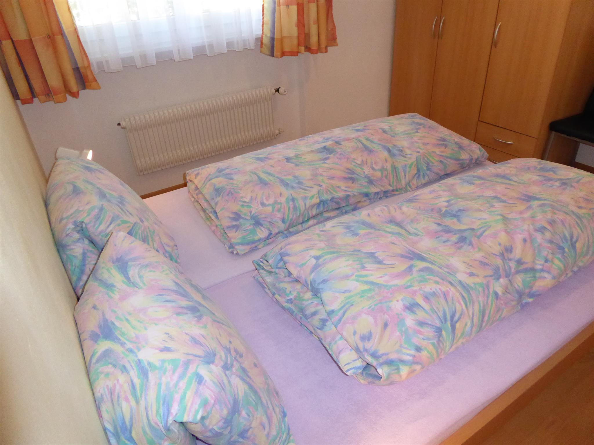 Zwei 2-Bettzimmer, Dusche/WC mit Doppel-Lavabo, Wohn/Esszimmer mit offener Küche. Modern ausgestattet: Küche mit Geschirrspüler, Mixer, Kaffeemaschine, Fernseher, Video, DVD, Internetanschluss, 1. Stock.