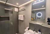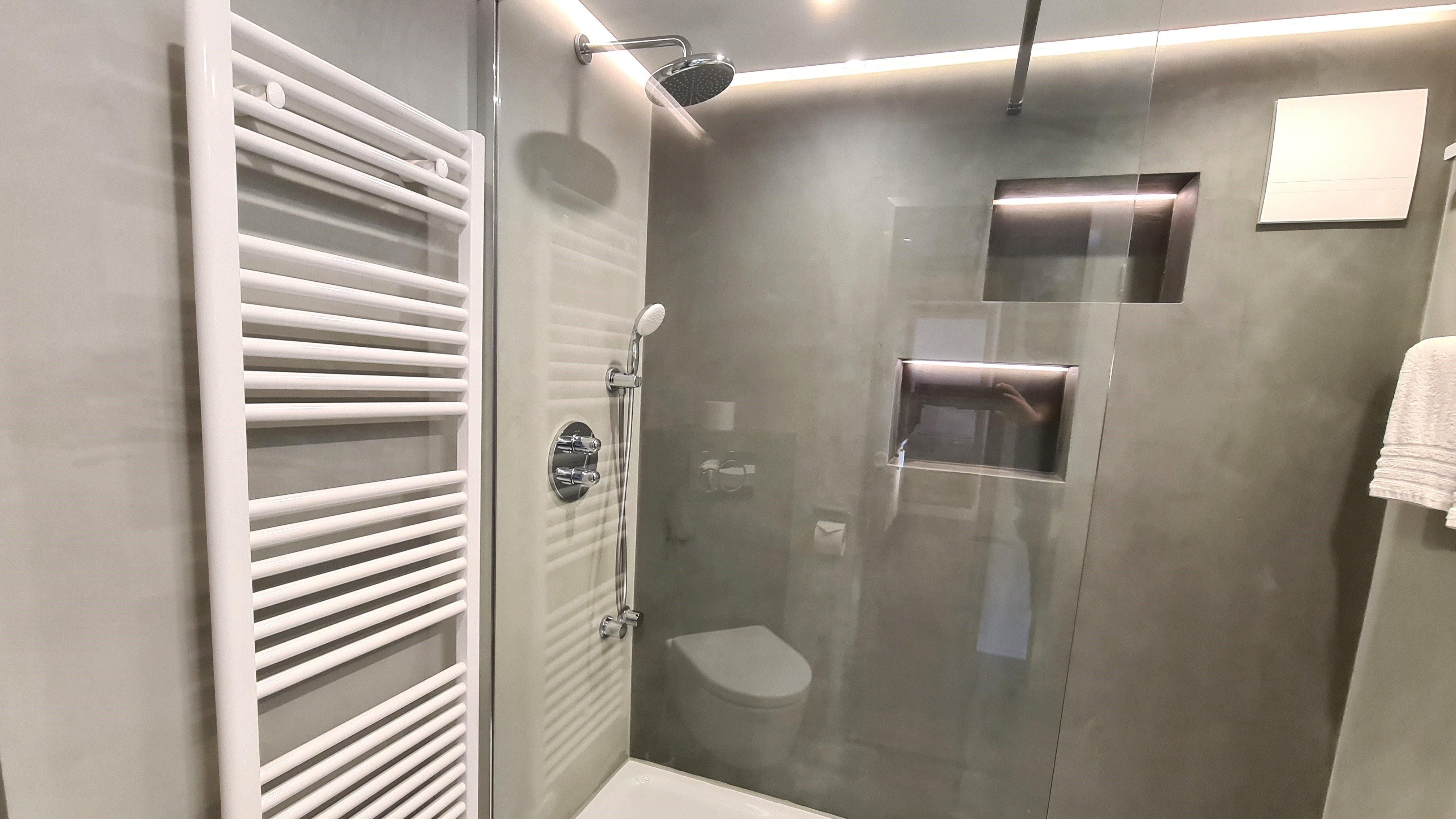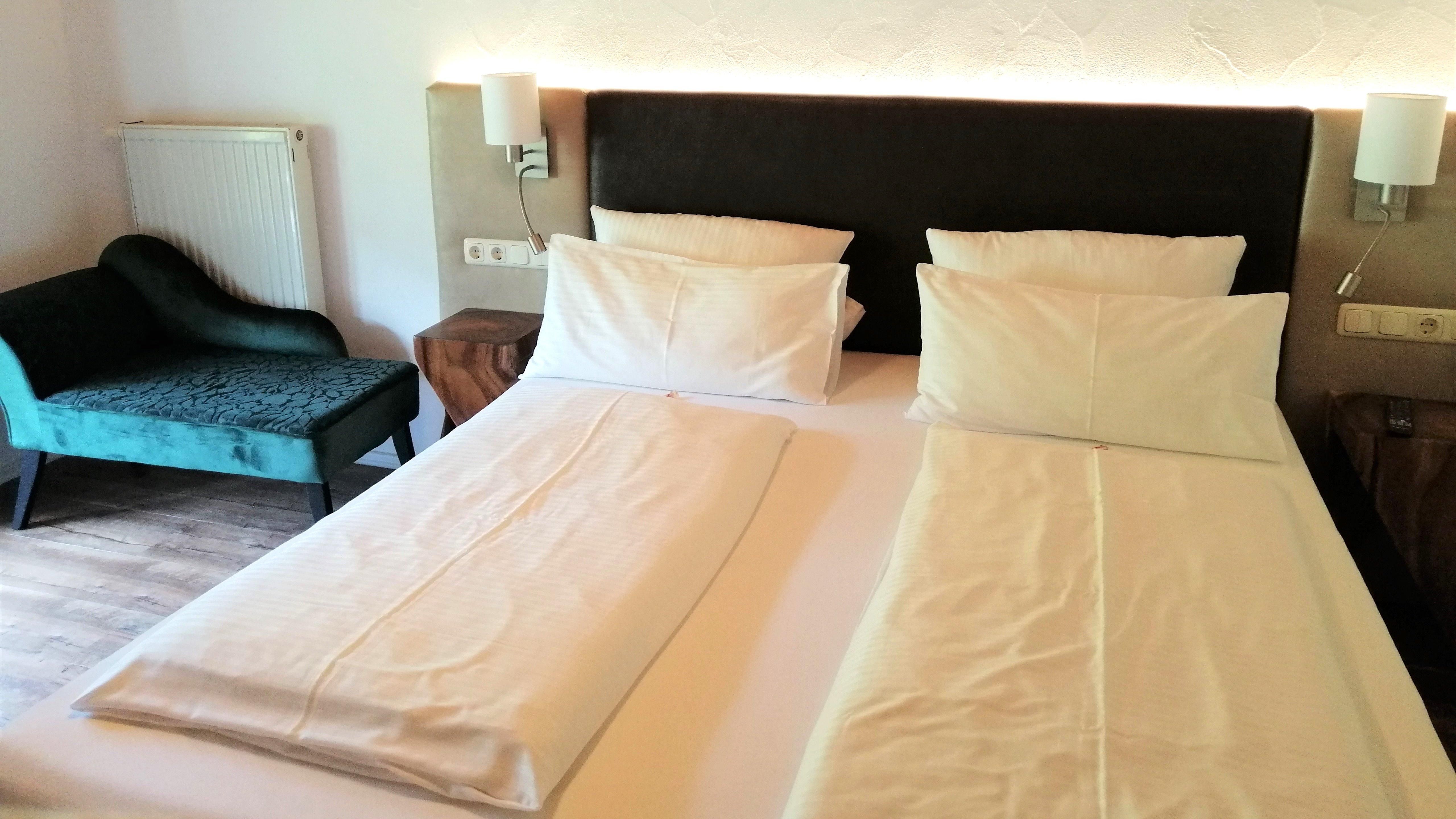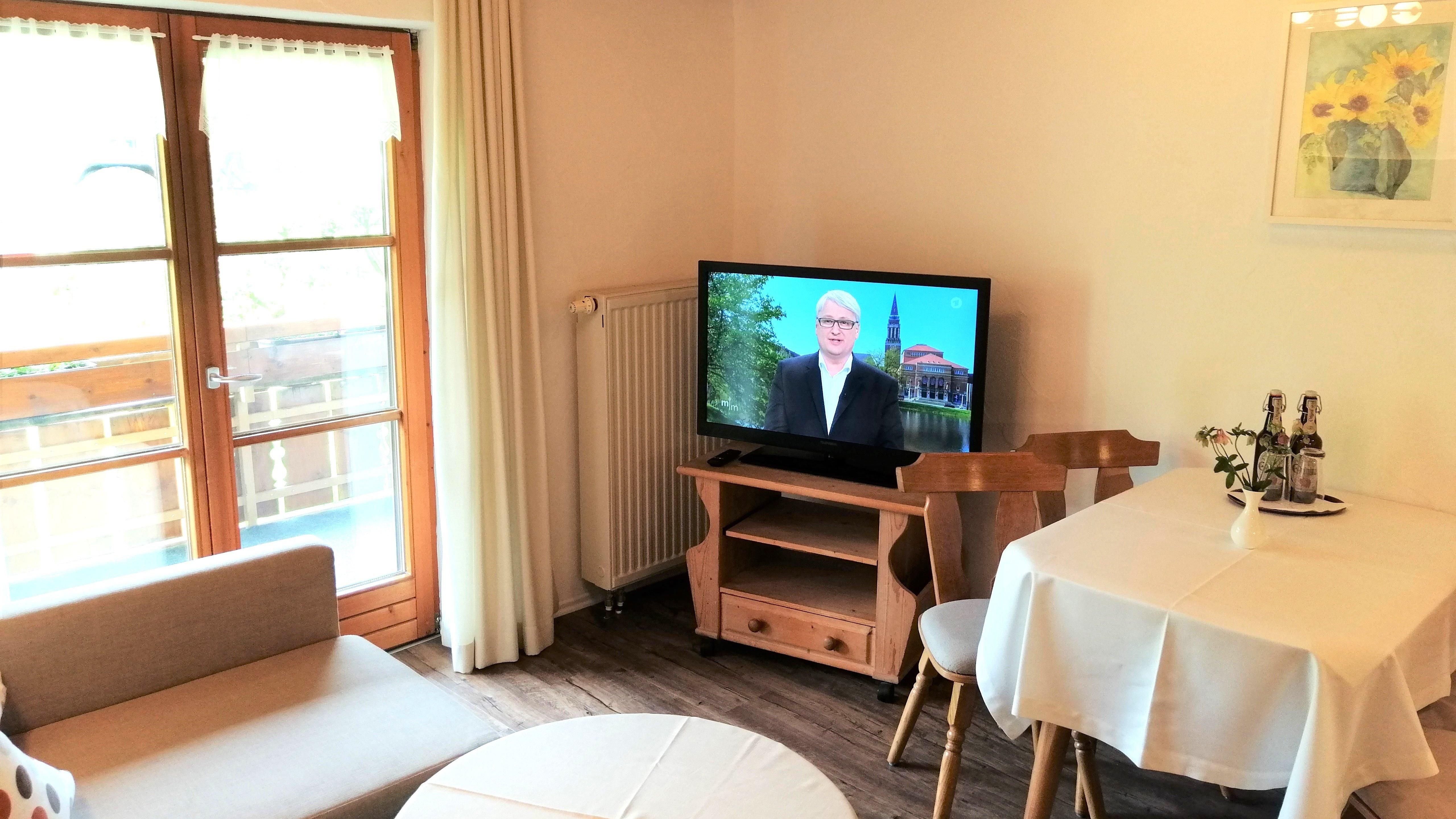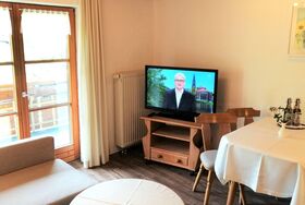 Die Ferienwohnung 3 liegt auf der 1. Etage und bietet auf ca. 50 m² Platz für einen erholsamen Aufenthalt. Sie verfügt über zwei getrennte Schlafzimmer: ein Schlafzimmer mit einem Doppelbett (180 cm x 200 cm) und einem zweiten Sat-TV sowie ein kleines Schlafzimmer mit einem Stufenetagenbett (Liegeflächen 140 cm x 200 cm und 90 cm x 200 cm). Der Wohnraum ist mit einer Couchgarnitur, einem separaten Essbereich, Sat-TV und einer integrierten Küchenzeile ausgestattet. Das Badezimmer verfügt über eine Walk-In Dusche mit Regenduschkopf. Handtuchwärmer und WC. Der möblierte Westbalkon ist zur Alleinbenutzung.