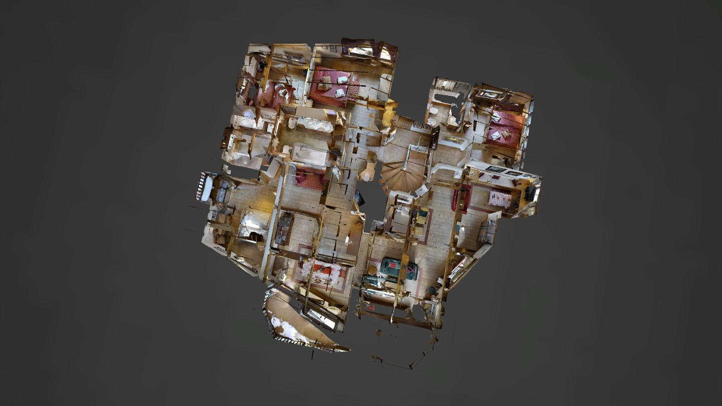 sowie auf der rechten Wohnungshälfte 2 weitere Schlafzimmer (je 2 Betten) abgetrennt durch ein Badezimmer mit Badewanne/WC/Doppelwaschbecken.