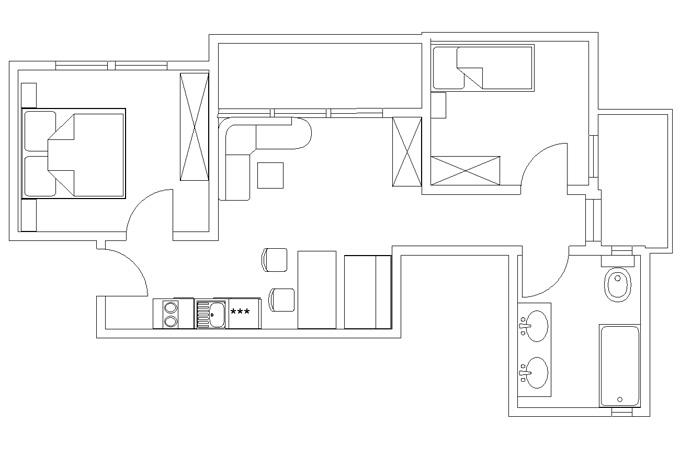 ca. 57 m², 2 Schlafzimmer (2 und 4 Personen), Bad, WC, Balkon Küche: komplett eingerichteter Küchenblock mit 2 Plattenkochstelle, Microwelle, Geschirrspüler, Toaster sowie Kaffeemaschine Wohnteil: Wohnlandschaft mit Kachelofen, Farb-TV, Telefon sowie Essecke
