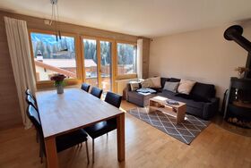 Sie finden in der Wohnung alle Annehmlichkeiten für einen entspannten Aufenthalt. Gemütliche Sitzecken, einen grossen Tisch zum Essen, Spielen oder Arbeiten im Home-Office, einen Schwedenofen für das Hüttenzauber-Gefühl, bequeme Betten und zweckmässige sanitäre Einrichtungen. Nach einem sportlichen Tag dürfen Sie in der Sauna die Muskeln verwöhnen.