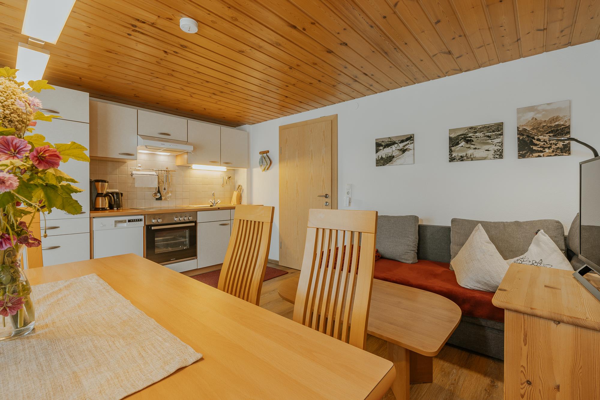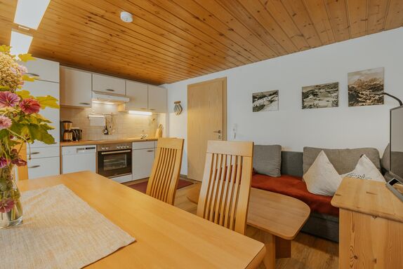 mit Balkon, 2 Schlafzimmer (inkl. Bettwäsche), Dusche/ 2 WC‘ s (inkl. Bade- sowie Handtücher), 1 Kinderzimmer. Die Wohnküche ist mit einem Kühlschrank plus Gefrierfach, Herd mit Backrohr, Spülmaschine, Wasserkocher, Kaffeemaschine, Geschirr ausgestattet. Unsere gemütliche Sitzcouch lädt Sie zum Verweilen und Entspannen vor unserem TV ein.