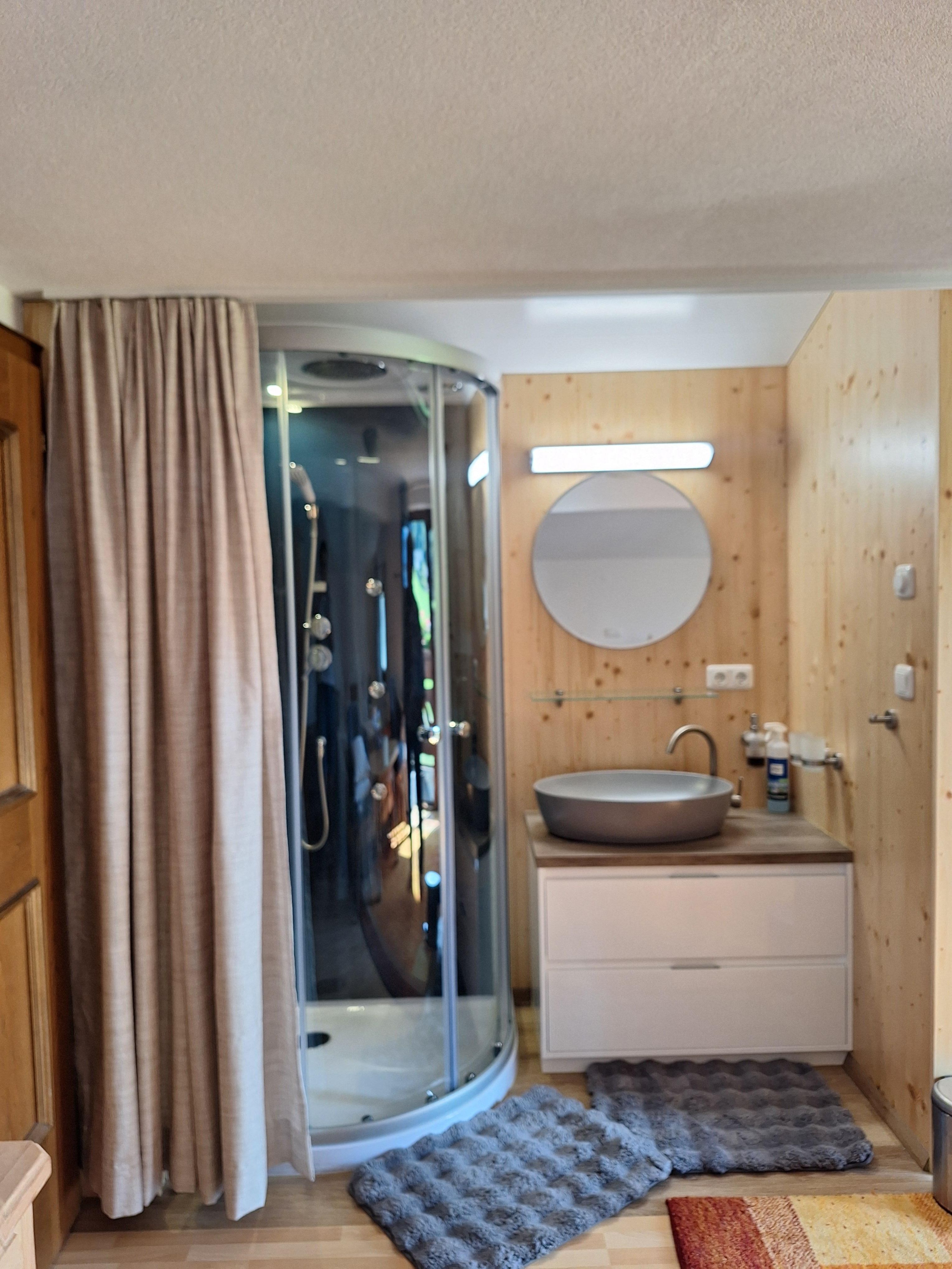 Es ist eine Dachwohnung und große Menschen müssen darauf achten sich den Kopf nicht zu stossen.