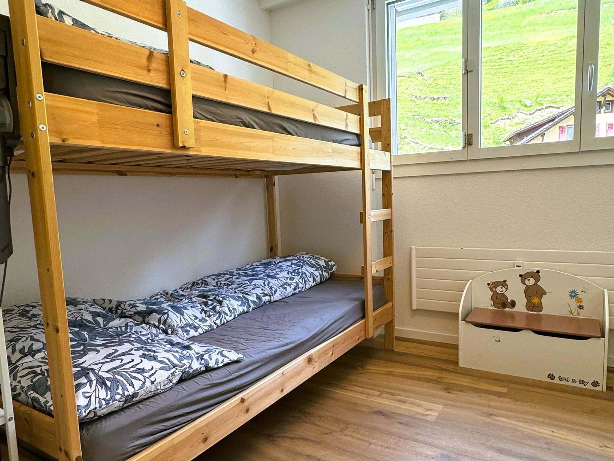 75 m2. Weitere Angaben des Anbieters: Moderne, erstklassige 3-Zimmerwohnung (75 m2) im 2. Stock eines Mehrfamilienhauses mit Lift in der Nähe des Eugeni-Sees und nur einige Gehminuten vom Zentrum und der Talstation gelegen (ca. 10 Gehminuten), Bushaltestelle (in Hochsaison) 100m, Busfahrt zur Talstation Titlis Bahnen 2 Minuten. Geeignet für 2 Erwachsene und 3 Kinder. Das Wohnhaus verfügt über einen Skiraum, eine Waschküche zur Mitbenützung sowie einen Kinderspielplatz. Das Wohn-/Esszimmer hat ein Sofa, einen Holz-Esstisch inkl. Tripp Trapp (Kinderhochstuhl für Kleinkinder und Kinder) sowie einen TV und Gratis-WLAN. Die offene moderne Küche ist komplett ausgestattet mit Geschirrspüler, Backofen, Nespresso Kaffeemaschine, Wasserkocher usw. Es gibt ein Schlafzimmer mit einem Doppelbett (1 Matratze 180cm breit) und ein Kinder-Schlafzimmer mit einem Kajütenbett sowie einem Einzelbett, eine moderne Dusche/WC. Parkplatz in der Tiefgarage inklusive. Aussenparkplatz vorhanden. Kleiner Westbalkon. Tiere nicht erlaubt. NICHTRAUCHER-WOHNUNG. 3-Zimmerwohnung im 2. Stock: Wohn/Esszimmer mit TV, 1 Schlafzimmer mit Doppelbett, 1 Kinderzimmer mit Einzelbett und 1 x 2 Kajütenbetten. Küche, Dusche/WC. Inklusiv: Toiletten- und Küchenwäsche, Tourismusabgabe. Exklusiv: Babybett CHF 20.00, Schlüsseldepot CHF 300.00 mit Kreditkarte.