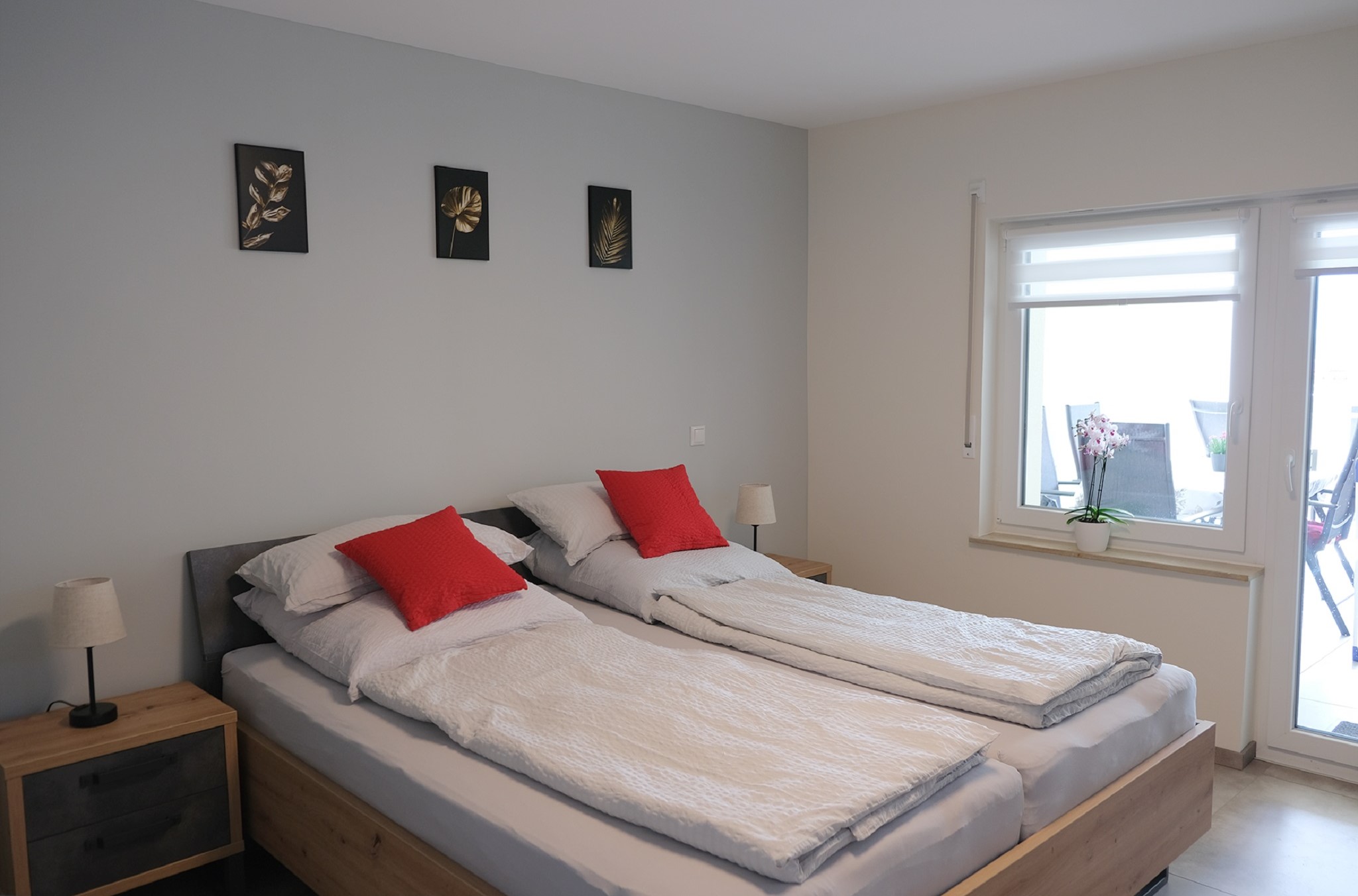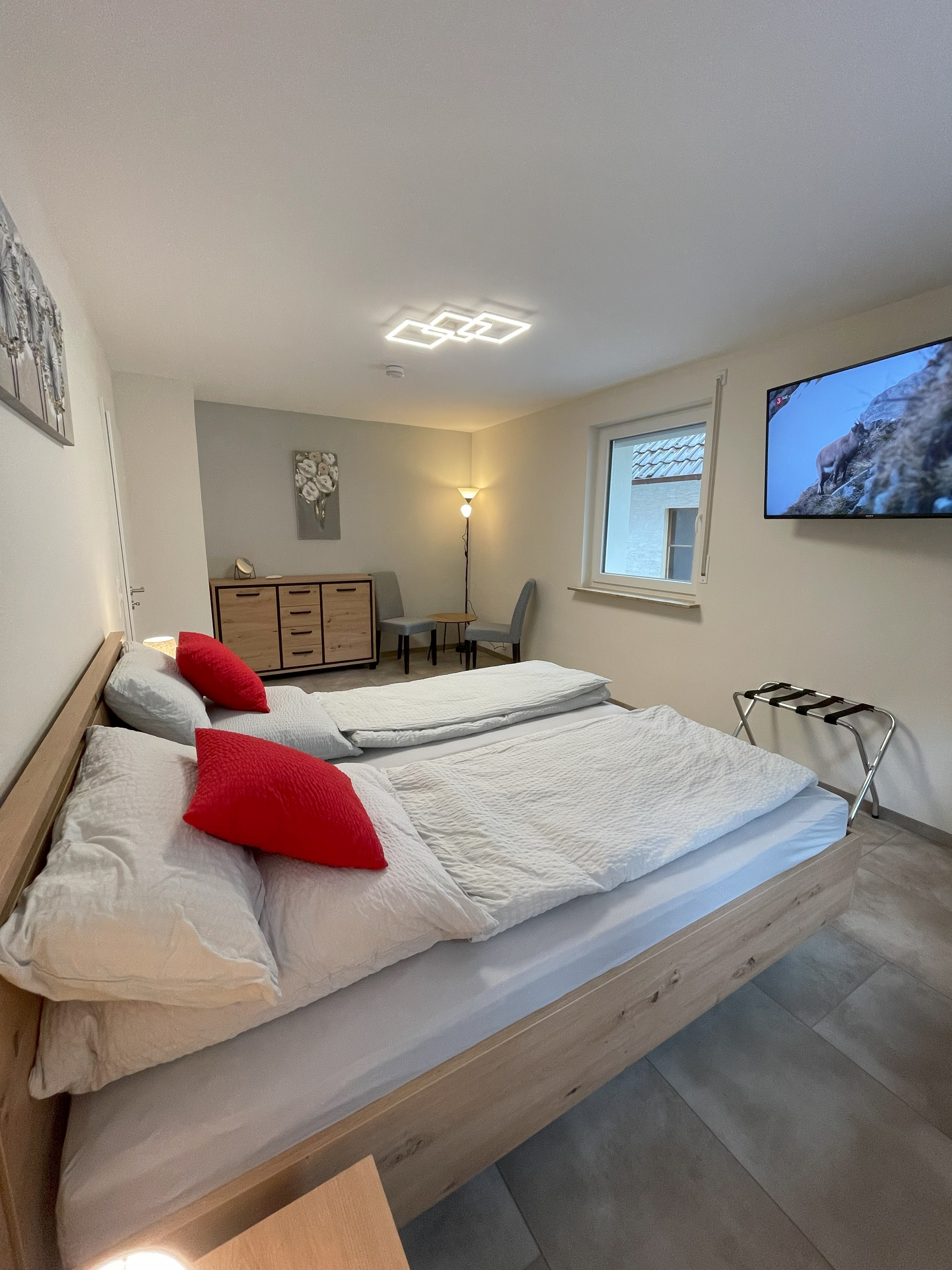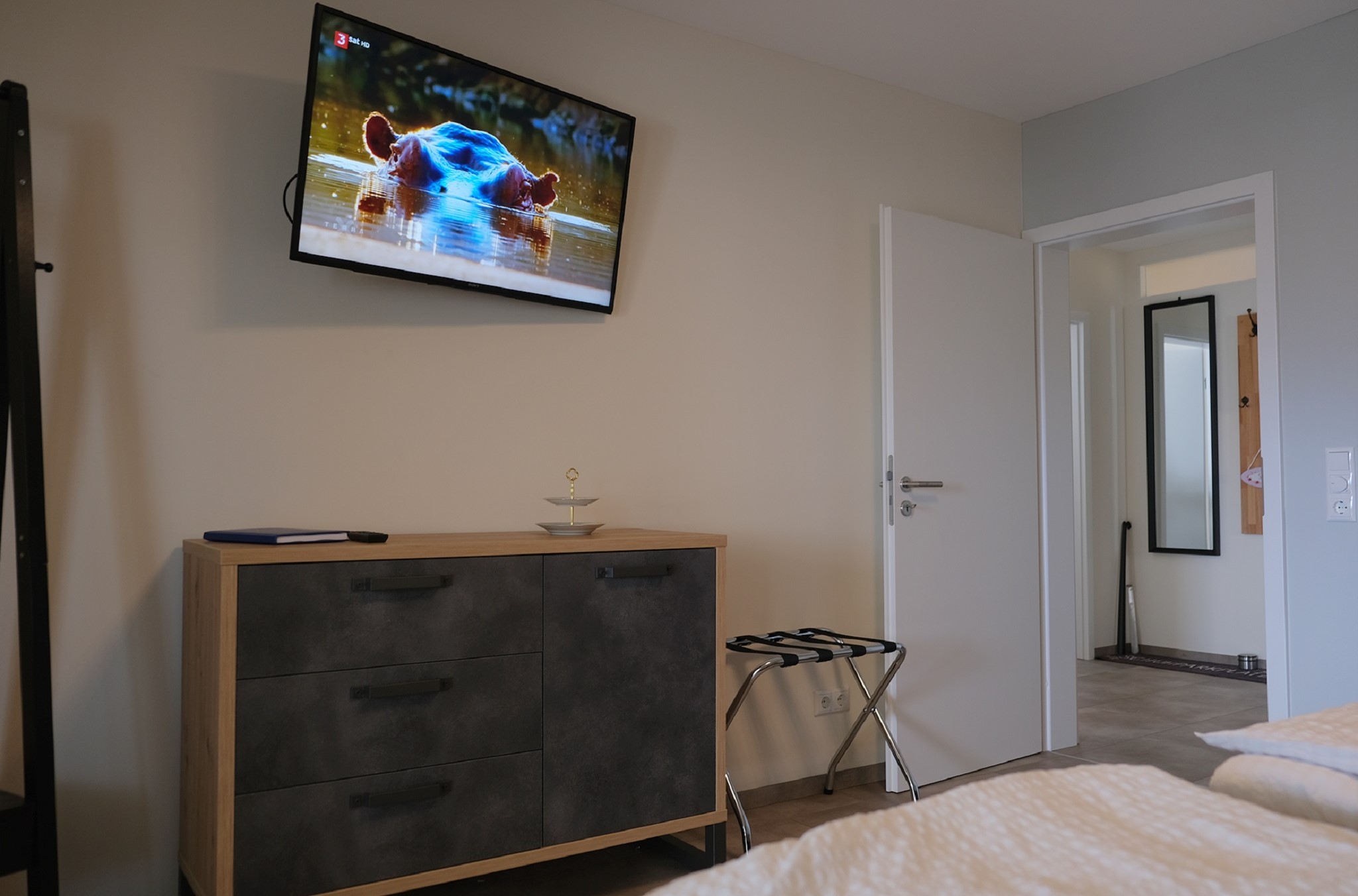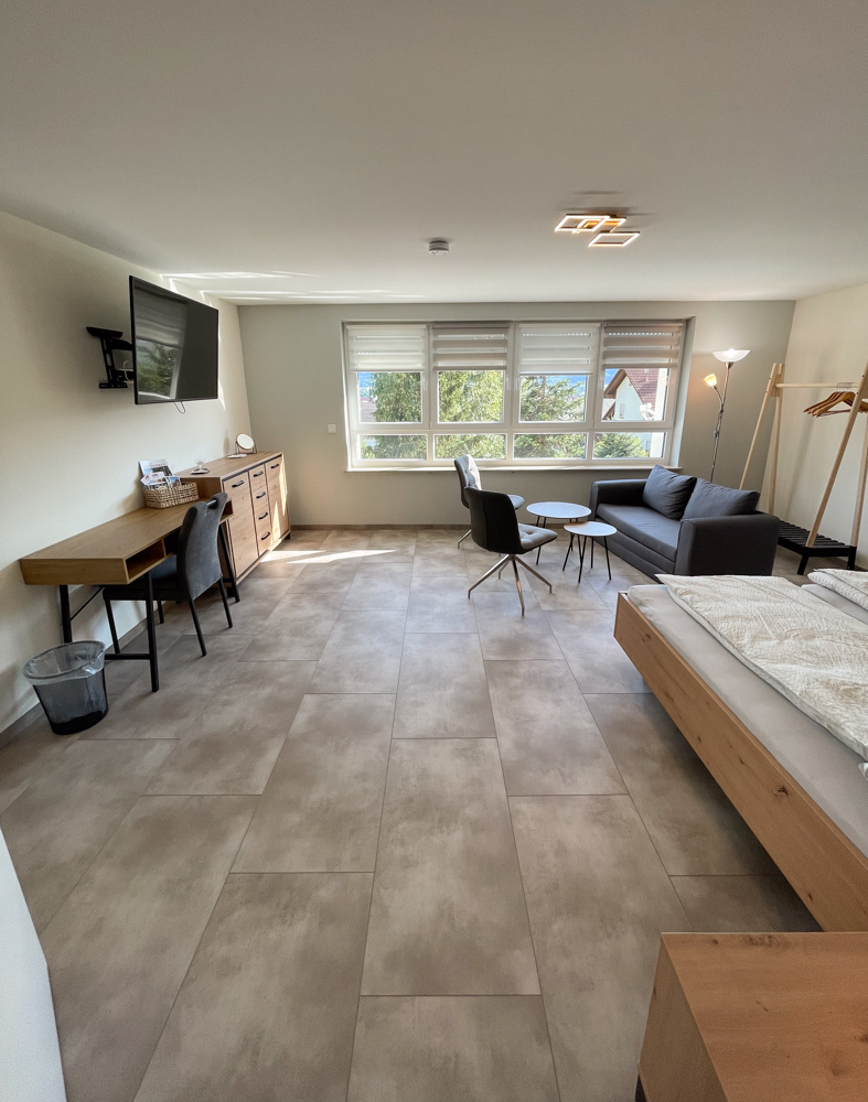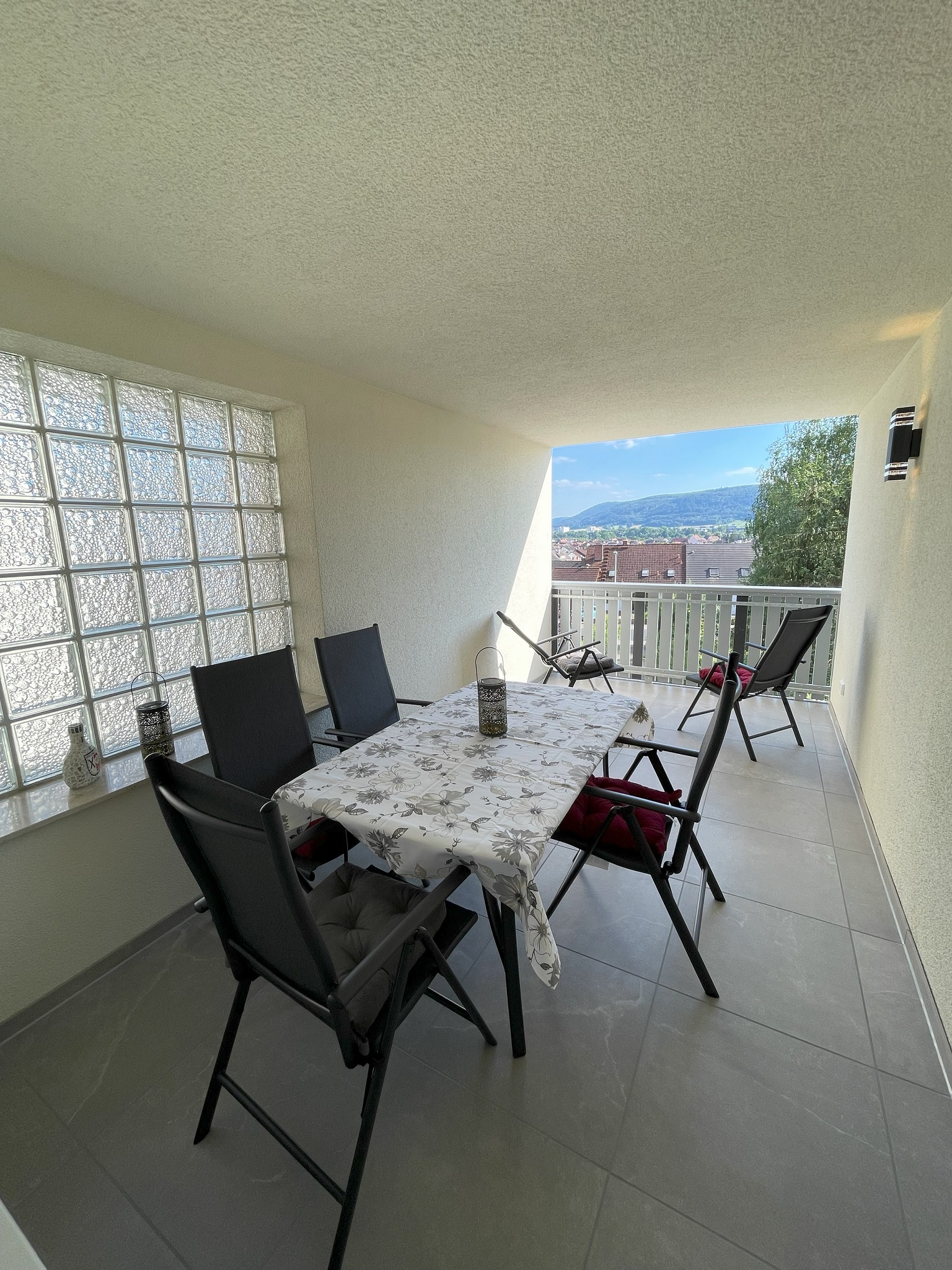 Unsere kernsanierte Ferienwohnung mit ca. 95m² Wohnfläche bietet Platz für 2-7 Personen. Der überdachte 15m² Balkon mit Talblick auf den Spessart und Odenwald sowie auf das Kloster Engelberg, lädt zum Entspannen oder zum gemeinsamen Essen ein. Das Appartment verfügt über 3 Schlafzimmer mit jeweils sehr komfortablem Doppelbett und einem hochwertigen Smart TV mit Satelitenfernsehen. Alle drei Schlafzimmer sind durch ihre großen Fenster taghell und zwei haben direkten Zugang zum Balkon. Die komplett ausgestattete Wohnküche mit Geschirrspüler, Kühlschrank inkl. Gefrierfach, Herd, Backofen, Mikrowelle, Wasserkocher, Eierkocher, Toaster und Kaffeemaschine lässt keine Wünsche offen. Der große Tisch mit seinen bequemen Stühlen und der große Fernseher, sowie vorhandene Gesellschaftsspiele eignen sich super für entspannte Familienabende. Das geräumige Badezimmer mit ebenerdiger Rainshower, großem Spiegel, Fön und Handtuchtrockner rundet das Gesamtbild ab. Waschmaschine und ein Trockner stehen ebenfalls zur Verfügung. Das WLAN und die Parkplätze vor dem Haus können Sie kostenfrei nutzen.