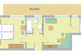Das Appartement Anemone ist komfortabel eingerichtet und 40 qm gross. Ein Wohnzimmer und ein Schlafzimmer. Küche, Bad, WC, TV, Radio, Telefon, Safe, freies w-lan.