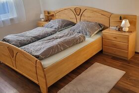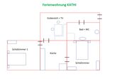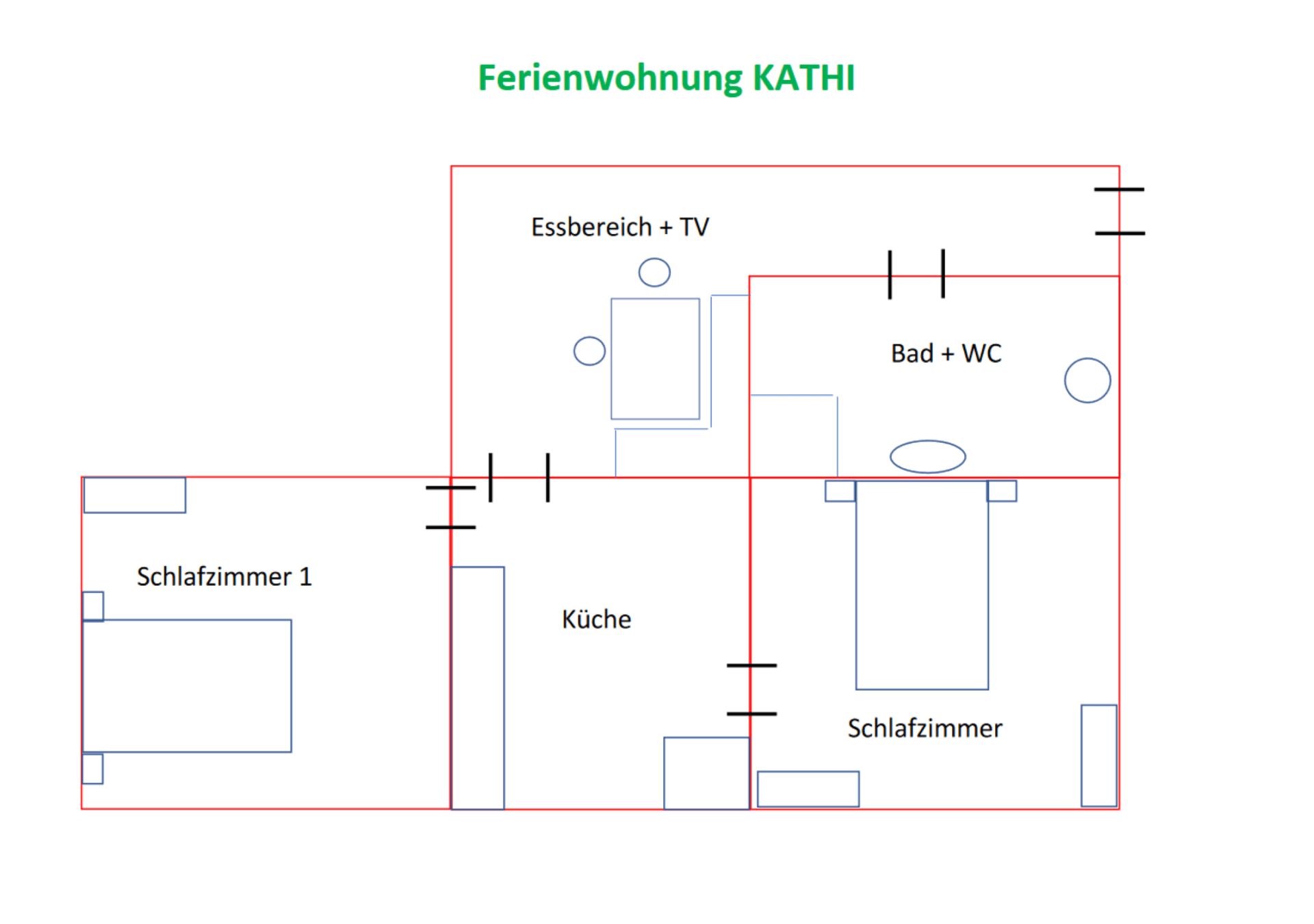 Die Ferienwohnung Kathi gliedert sich in zwei Schlafräume mit jeweils einem Doppelbett. Eine Terrasse mit Sitzgarnitur und ein Essbereich mit TV laden zum verweilen ein. Aus Platzgründen befindet sich in dieser Wohnung kein Wohnzimmer mit Sofa. Ein direkter Blick auf den Streichelzoo, Kühe und Berge machen den Aufenthalt bei uns perfekt.