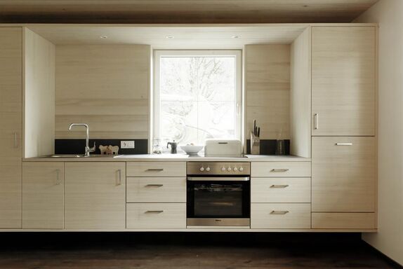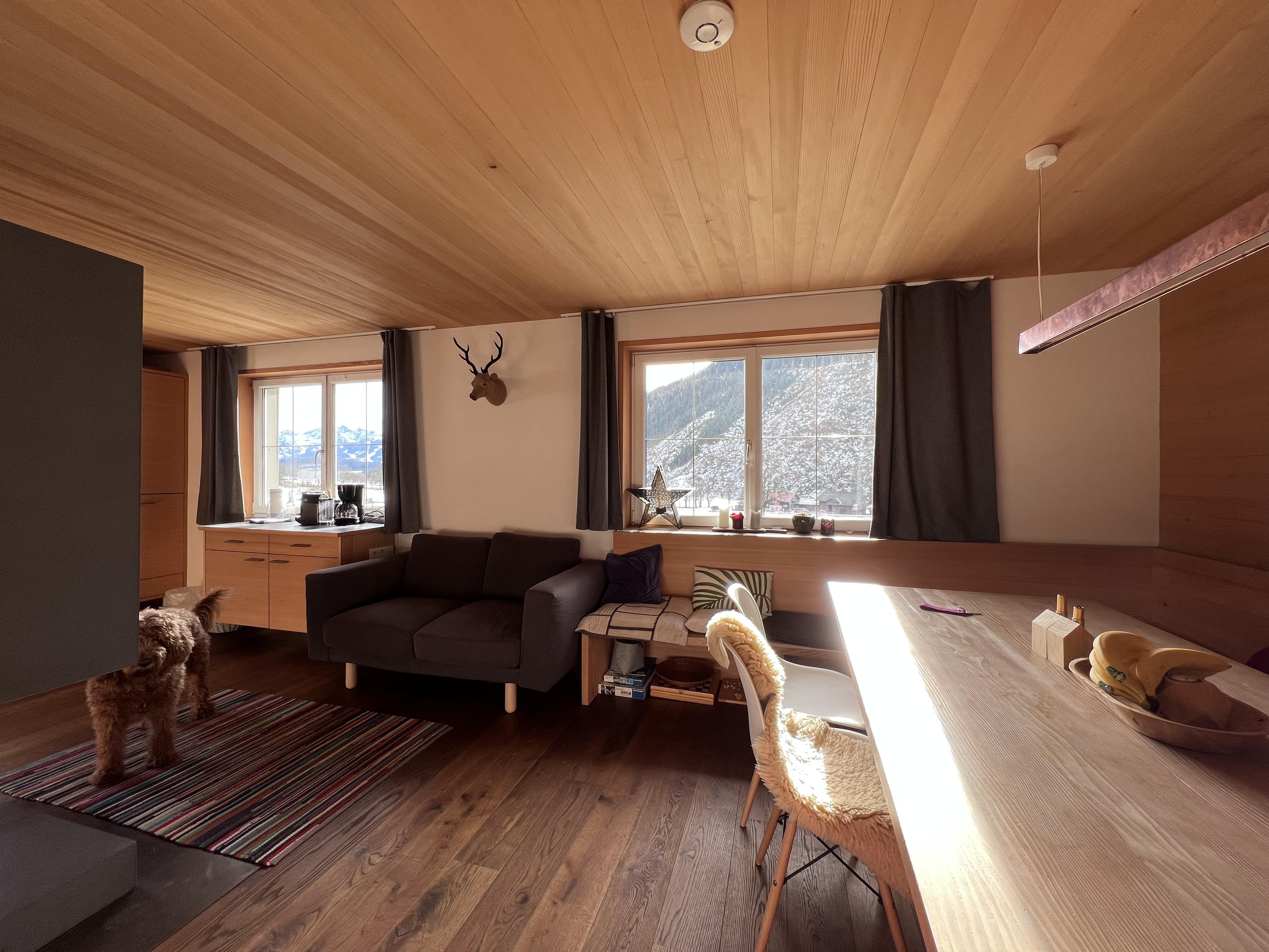 - eine große alpine Stube mit Essbereich inklusive voll ausgestatteter Küche und gemütlichem offenen Kamin