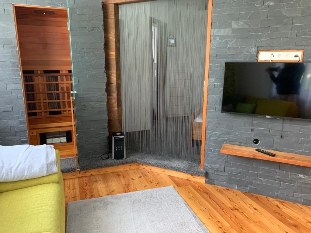 Nettes romantisches Apartment mit Infrarotkabine. 1 Schlafzimmer, 1 Eckbank mit einer weiteren Schlafmöglichkeit. Vollständig ausgestattete Küche mit Geschirrspühler, Backrohr und Mikrowellenherd. Sehr nett und gemütlich eingerichtet. Großes Badezimmer mit Badewanne und Dusche. Das Apartment ist mit einer Waschmaschine ausgestattet.