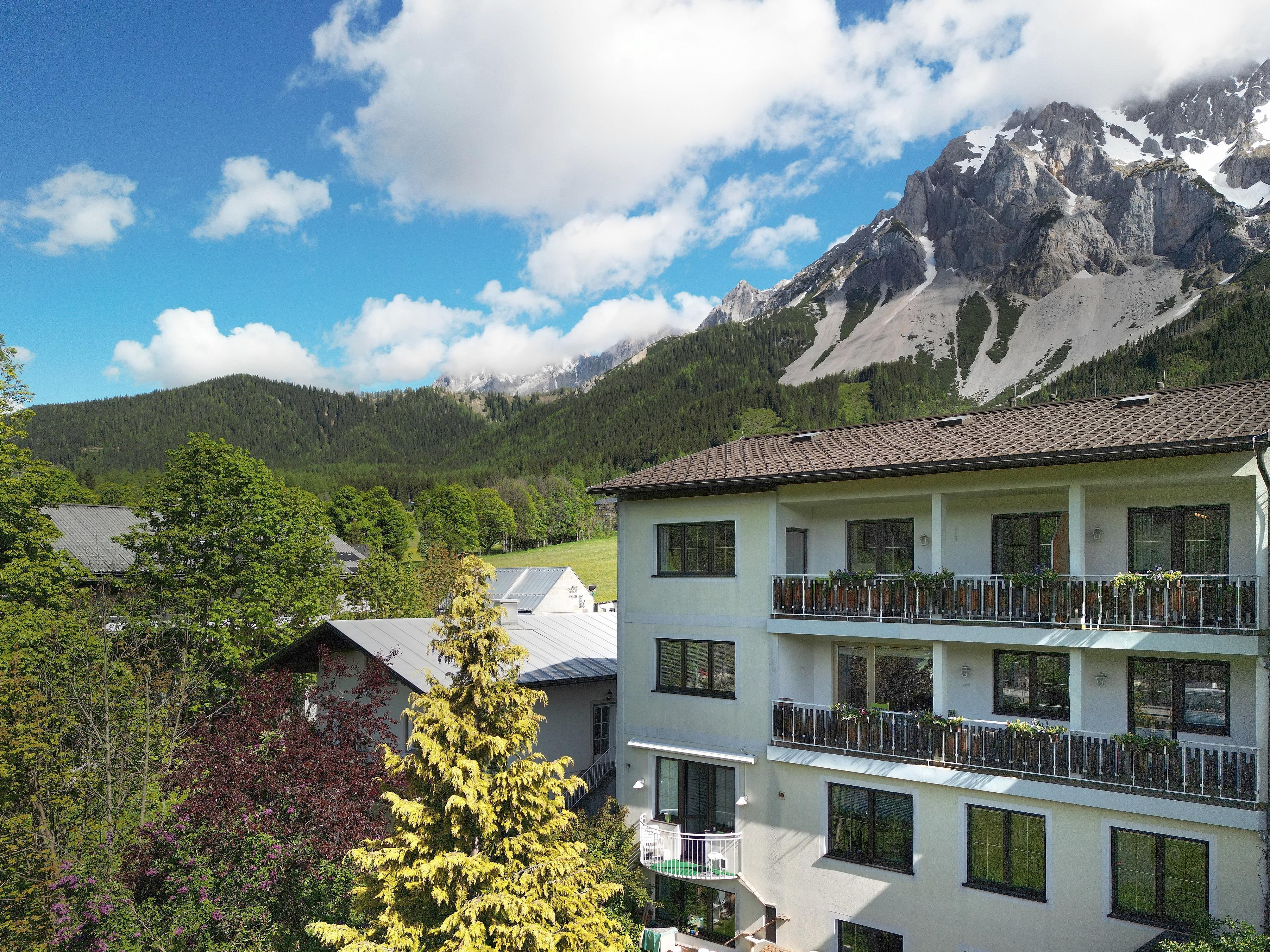 Lassen Sie sich überraschen von unserem Appartement Alpenrose. Modern, hell, freundlich, praktisch und neu renoviert präsentiert sich dieses Appartement, welches sich im 2. Stock befindet. Mit Südbalkon und Liegestühlen ausgestattet, haben Sie Aussicht nach Süden auf die Schladminger Tauern und auf den Kulmberg mit Sprungschanze. Beim Frühstücken geniessen Sie den herrlichen Ausblick im Norden auf das Dachsteingebirge mit der Scheichenspitze und dem Dachstein!