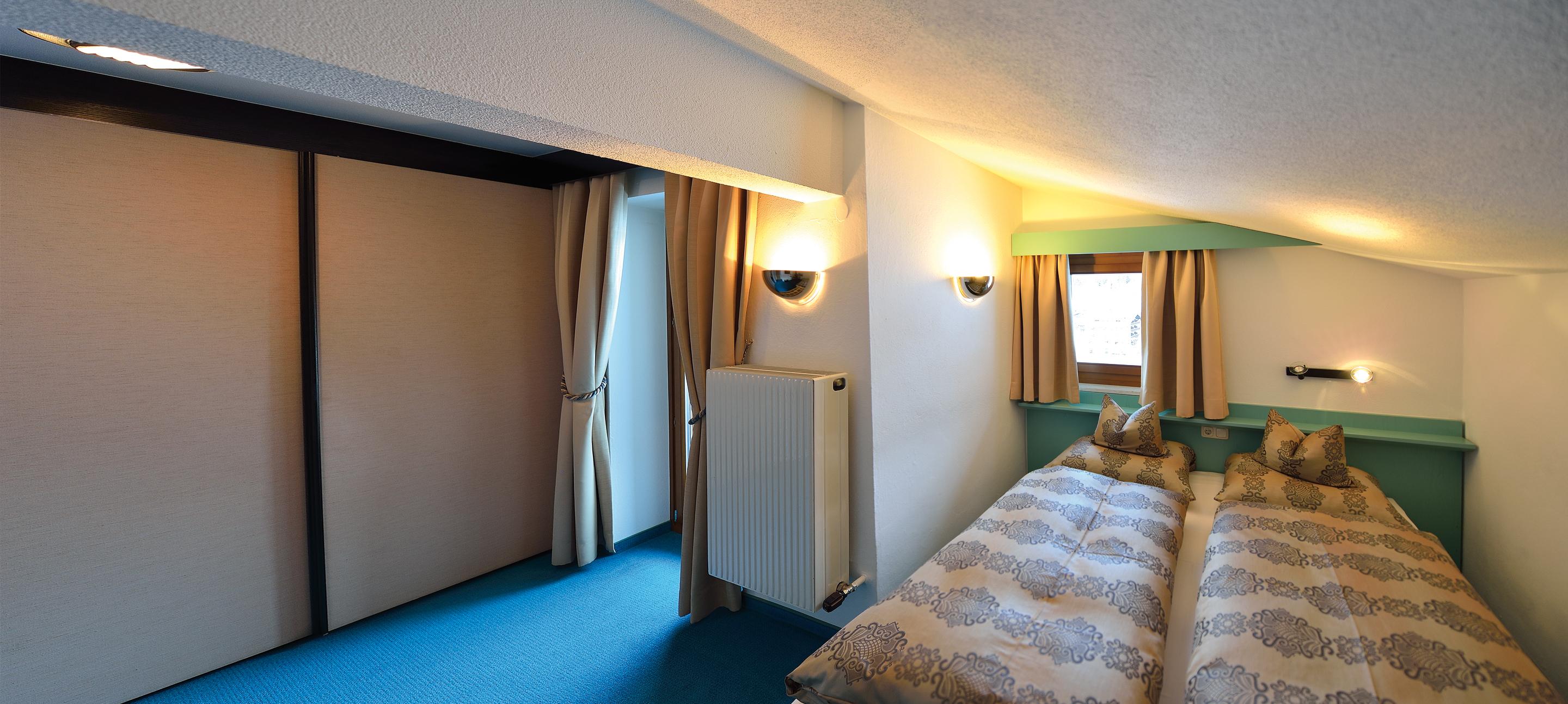 Hotel mit 18 Zimmern gesamt, 5 davon sind Juniorsuiten mit der Möglichkeit für ein 3. Bett. Kleine Doppelzimmer können auf Anfrage auch als Einzelzimmer gebucht werden. Das Angebot ist nur mit Frühstück vom Buffet.