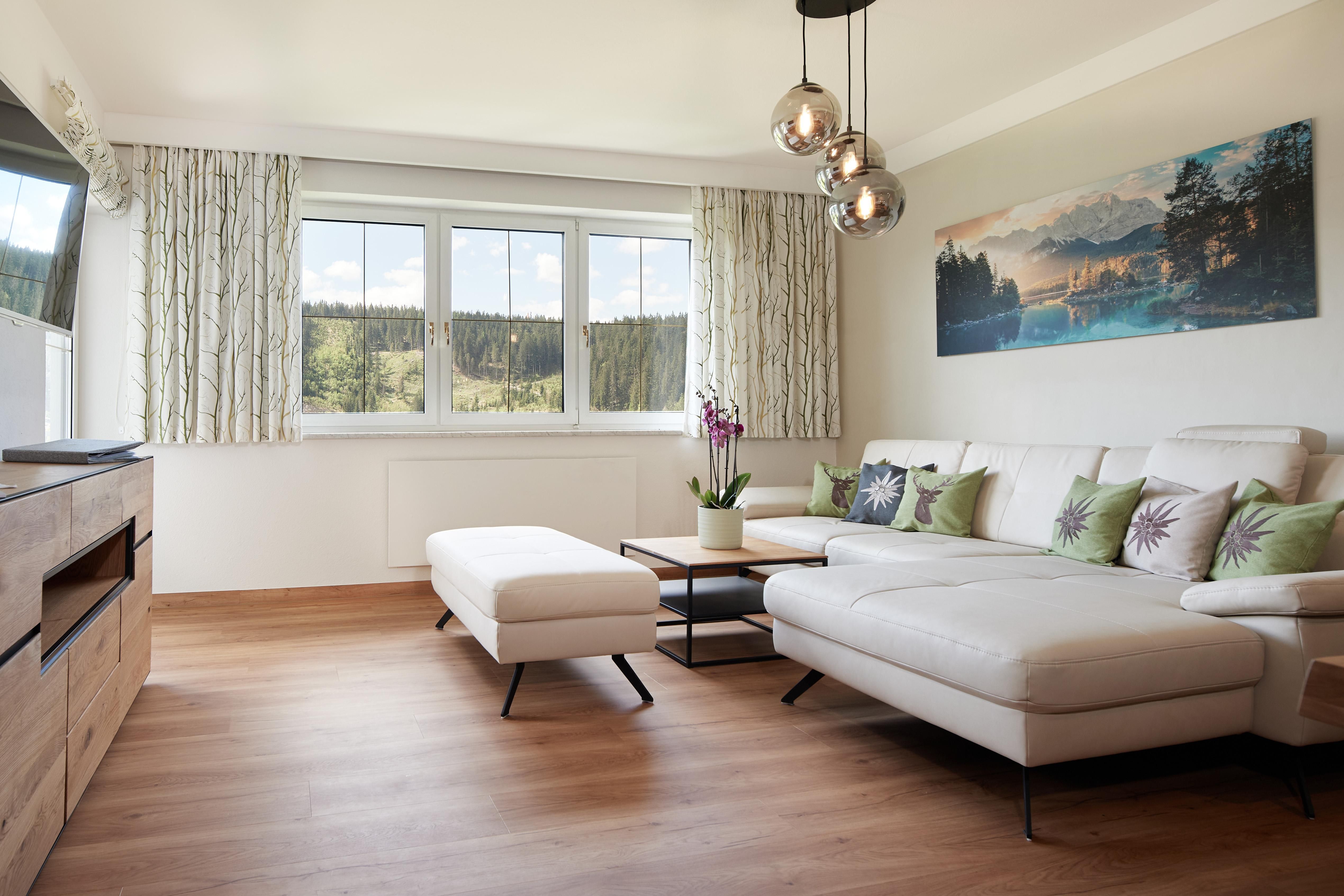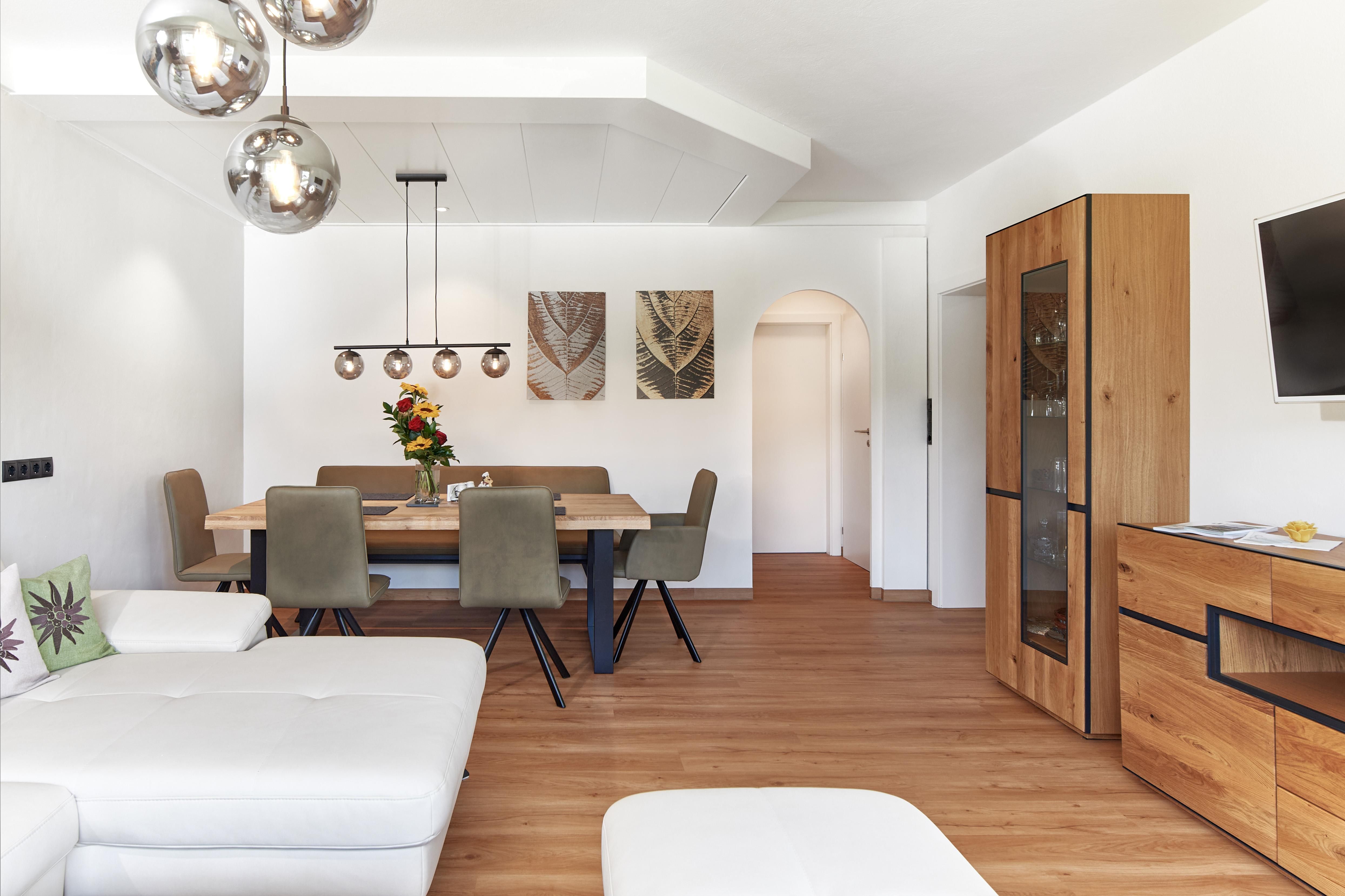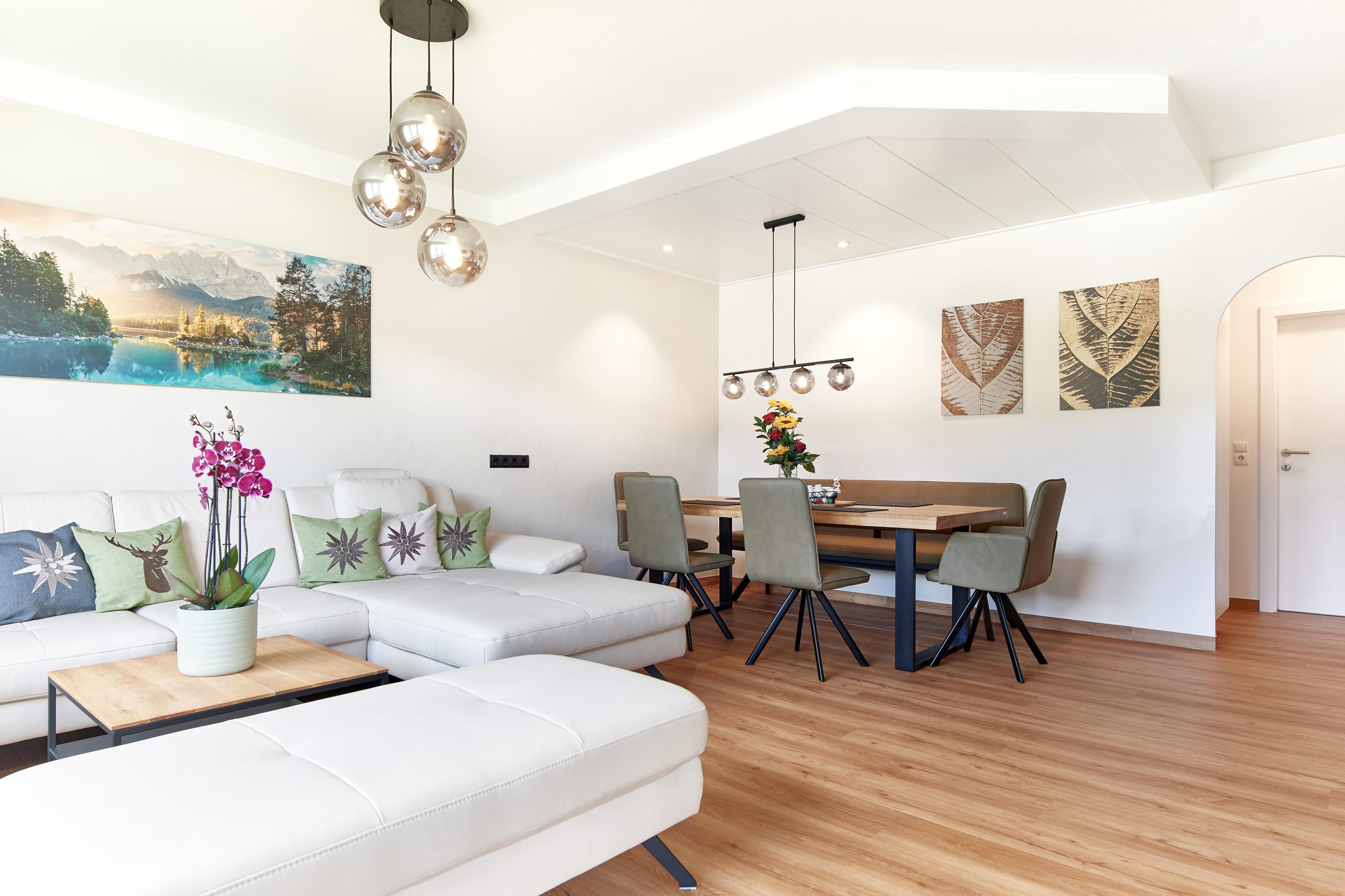 Das gemütlich, rustikal und neu renovierte Appartement Edelweiß befindet sich im 2. Stock unseres Hauses und ist durch großzügige Raumaufteilung das perfekte Zuhause für Ihre Urlaubstage in Ramsau am Dachstein. Sie urlauben im 2.Stock mit großem Südbalkon und haben dazu herrliche Aussicht nach Süden in die Schladminger Tauern und auf den Kulmberg mit der Sprungschanze. Aufwachen tun Sie im Schlafzimmer mit Blick auf das Dachsteingebirge im Norden!