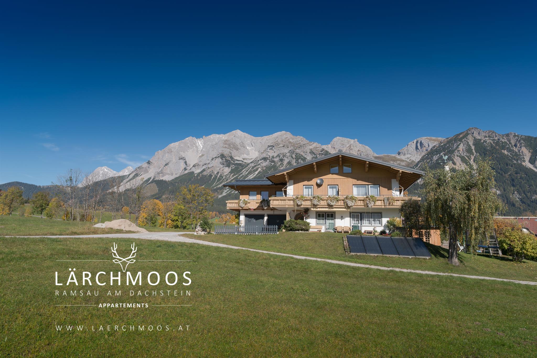 APPARTEMENTS LÄRCHMOOS Urlaub in Einklang mit der Natur Die einzigartige, weitläufige Streusiedlung der Ramsau ist gegen Süden ausgerichtet ermöglicht Rekordwerte an Sonnenstunden. Unser Haus, im klassischen Salzburger Stil ist rundum mit Holzbalkon ausgestattet, damit Sie das fantastische Bergpanorama auch zu Hause in vollen Zügen genießen können. Die freie, ruhige und ganztägig sonnige Lage auf 1050 m Seehöhe wird von unseren Gästen besonders geschätzt. Inmitten einer malerischen Landschaft, zwischen dem im Norden gelegenen hellen Kalkstein-Massiv der Dachsteingruppe – verbunden durch das Ennstal – mit dem grün bewachsenen Urgestein der Schladminger Tauern im Süden. Ein schönes Fleckchen Erde mit unerschöpflichen Möglichkeiten dass es wert ist mit allen Sinnen erfahren und bewundert zu werden. Um diesen Schatz auch nachhaltig zu bewahren liegt uns Umweltschutz besonders am Herzen: Unser Haus wird durch Sonnenenergie und heimische Holz-Pellets beheizt und wir trennen und recyclen den Hausmüll. Seien Sie unser Gast und sammeln Sie Bilder, Impressionen und Eindrücke, die die Sorgen des Alltags schwinden lassen und Platz machen für neue Perspektiven… Für detaillierte Informationen besuchen Sie bitte unsere Websites: www.laerchmoos.at http://www.facebook.com/laerchmoos Unsere liebevoll eingerichteten Ferienwohnungen in familierer Atmosphäre im Ort Ramsau am Dachstein dem sonnigen Hochplateau am Fuße des Dachsteins bieten einen idealen Ausgangspunkt für alle Aktivitäten die Sie für Ihren Urlaub planen: Langlaufen, Skifahren, Tourenski- & Winterwandern, Freeriden, Snowboarden, … im Winter Wandern, Bergsteigen (Klettersteige), Mountainbiken, Paragleiten, Reiten… im Sommer …oder einfach nur Zeit mit der Familie verbringen und Ruhe, Entschleunigung, Entspannung und Erholung finden in Ramsau am Dachstein – Der Quelle deiner Kraft. Ramsau am Dachstein Verbringen Sie Ihren Urlaub im beliebtesten Sommer- und Wintersportort der Steiermark, dem grünen Herz Österreichs. Der Austragungsort der Nordischen Ski WM ist mit seinem Langlaufzentrum und der Skisprunganlage aus gutem Grund ein bevorzugtes Trainingsgebiet der Sportelite. Der Nachbarort Schladming, Veranstalter der alpinen Ski Weltmeisterschaften, mit seinem alljährlichen Night-Race auf der Planai, ist nur gut 10 Fahrminuten enfernt. Vergnügen Im Schnee Genießen Sie in unseren gemütlichen Appartements den schönen Panoramablick auf das Ennstal das die beiden Bundesländer Steiermark und Salzburger-Land mit seiner fantastischen Bergwelt verbindet. Mit dem Ski amadé Ticket stehen Ihnen über 760 Pistenkilometer zur Verfügung. Neben unseren Hausbergen Planai, Hauser Kaibling, Hochwurzen, Reiteralm und dem Dachstein-Gebiet mit dem Dachsteingletscher erstreckt sich die Skiregion über die Salzburger Sportwelt (Flachau, Zauchensee, Sankt Johann /Alpendorf,…) bis zu den Skigebieten Gastein und Hochkönig. Das 220 km lange Langlauf- und Skating- Loipennetz und zahlreiche Winterwanderwege führen direkt vor unserem Haus vorbei bis zum Nordischen WM Stadion Ramsau Ort, wo sogar eine Nachtloipe zur Verfügung steht. Sommerfrische & Bergsommer Auch in der warmen Jahreszeit ist die Ramsau ein Luftkurort und Wander- und Kletterdorf mit Weltruf. Über 200 km markierter Wanderwege und 18 gesicherte Klettersteige unterschiedlicher Schwierigkeitsgrade machen die Ramsau zum Eldorado für Kletterer und Bergsportbegeisterte. Wir würden uns freuen Sie schon bald bei uns begrüßen zu dürfen! Sonnige Grüße, Familie Pilz PS: Für weitere Informationen zu den unzähligen Möglichkeiten unserer Region besuchen Sie bitte: Ramsau.com oder die Infobereiche zur Sommercard / WinterCard