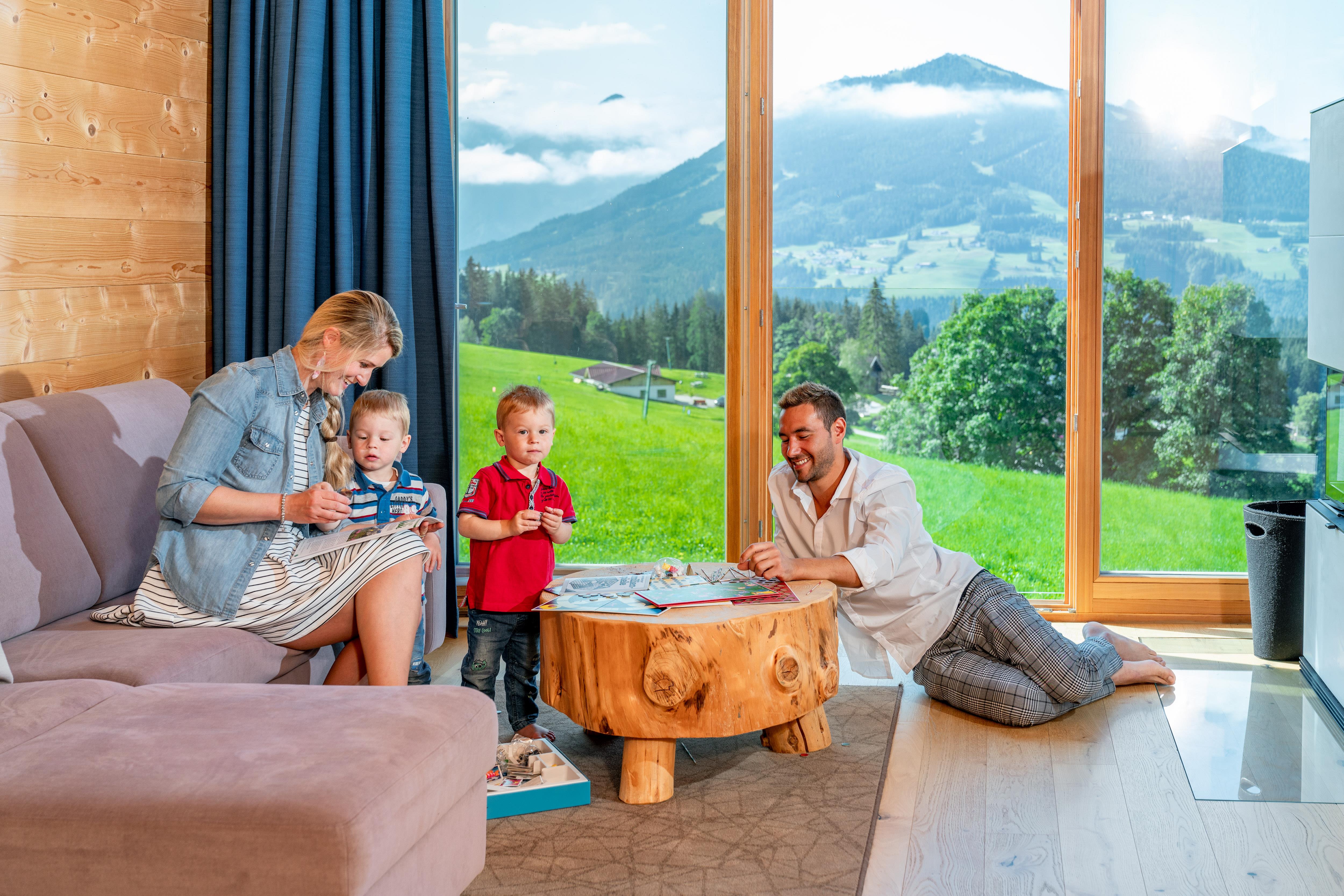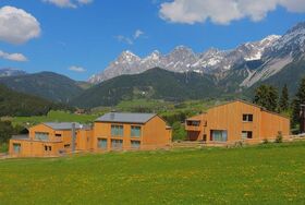 Wohlfühl Appartements am Fuße des Dachsteins. Insgesamt stehen 15 neue und modern eingerichtete Appartements für 2 - 8 Personen in unseren Naturholz-Chalets im Ortsteil Vorberg zur Wahl. Jedes Appartement ist mit eigener, ca. 4m² Sauna und offenem Kamin ausgestattet. Zusätzlich bieten wir geräumige Doppelzimmer mit Schlafcouch (38m²) mit tollem Frühstücksbuffet, großzügige Familiensuiten mit 2 Schlafzimmern (102m²!), ein Penthouse (116m²) und eine Wohlfühloase mit Finnischer Sauna, Zirbenholz-Ruhebereich mit Schaukelliegen, Vitalecke, Fitnessraum und Massageangebot an!