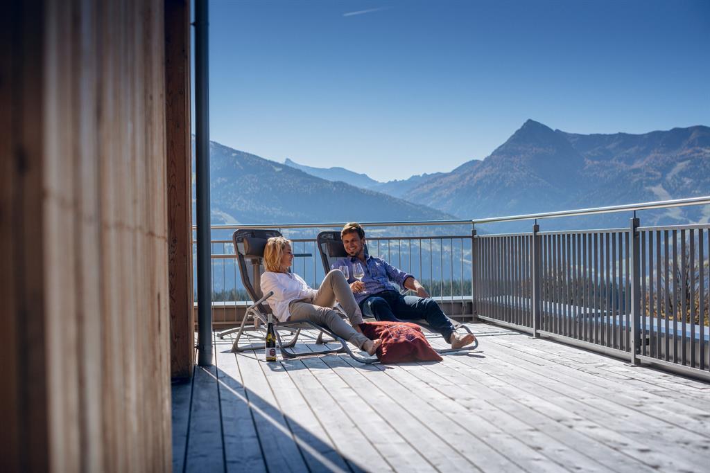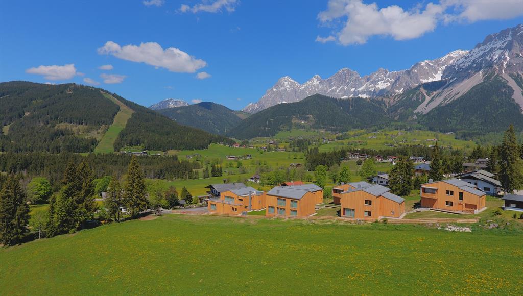 Liebevoll fügt sich unser kleines, gemütliches Chaletdorf in schöner Hanglage mit tollen Weit- und Ausblicken auf die Schladminger Tauern, den Rittisberg und den Dachstein in die Umgebung ein.
