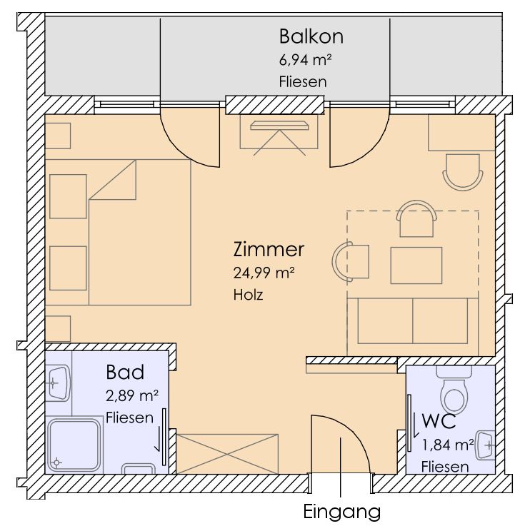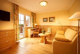 Juniorsuite mit Balkon, 1 Raum mit großzügiger Sitzecke oder Ausziehbett für 2 Personen, Dusche/WC getrennt, Sat-TV, Telefon, Fön, Safe, Bademantel