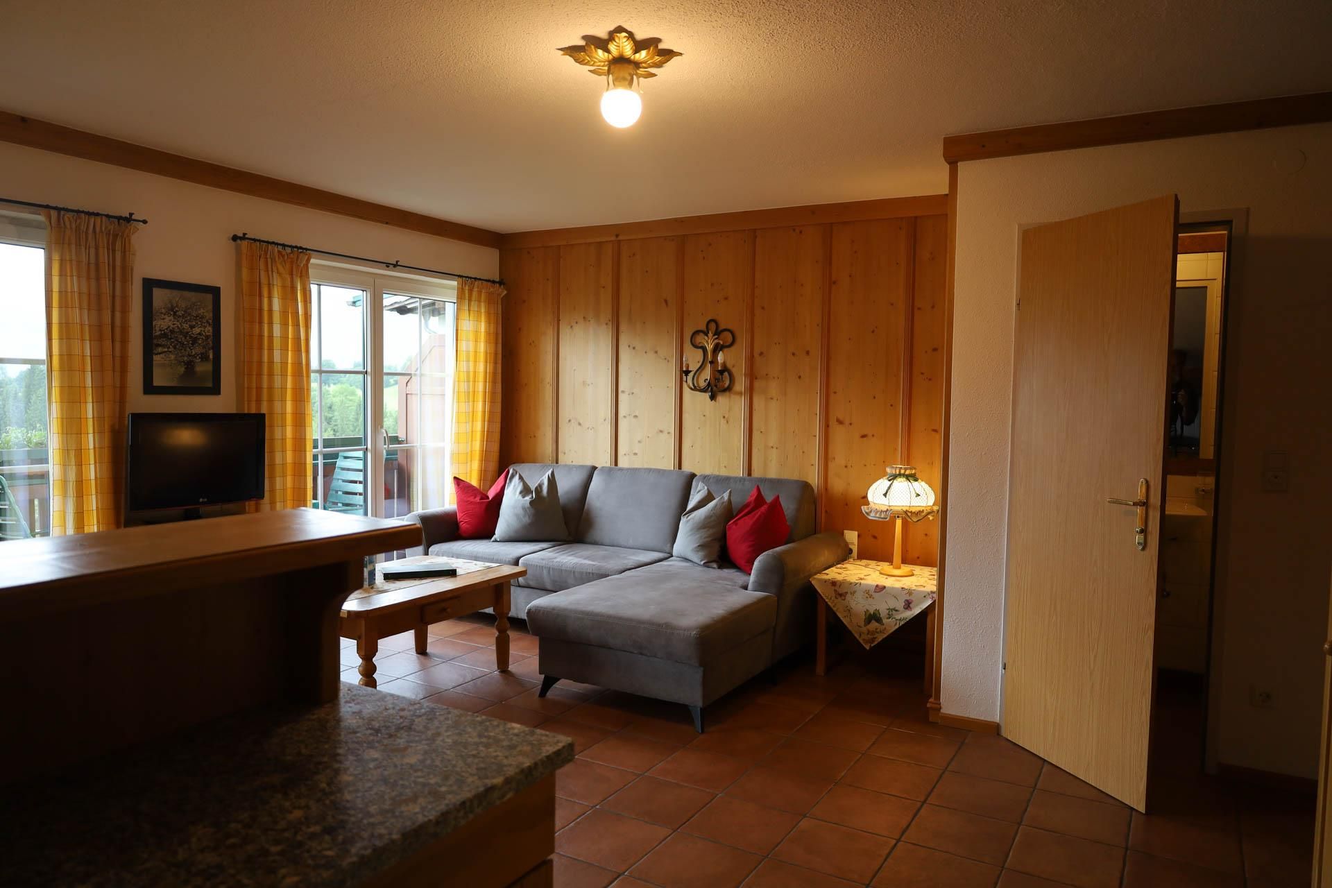 Unsere komplett eingerichteten und komfortablen Ferienwohnungen für 2-5 Personen bieten Ihnen einladende Schlafzimmer, moderne Badezimmer mit separatem WC, einen großen Wohnschlafraum mit Balkon und wunderschönem Panoramablick auf die umliegende Berglandschaft. In der voll ausgestatteten Küche mit gemütlicher Sitzecke genießen Sie gesellige Urlaubstage mit Freunden und Familie. Jede Ferienwohnung ist auch mit unserem köstlichen Frühstück oder Halbpension buchbar.