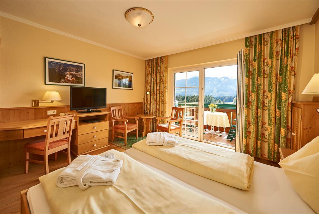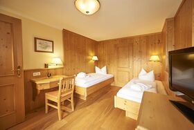 Familienzimmer = Doppelzimmer für 2 Personen mit Holzboden, mit Balkon und schönem Panoramablick, Badezimmer mit Dusche und WC, Fön, Bademäntel. Getrenntes kleines Kinderzimmer mit 2 Einzelbetten, Balkon mit schönem Panoramablick. Badezimmer mit Waschbecken und WC, Fön, Bademäntel. Beide Zimmer mit Sat-TV und Safe.