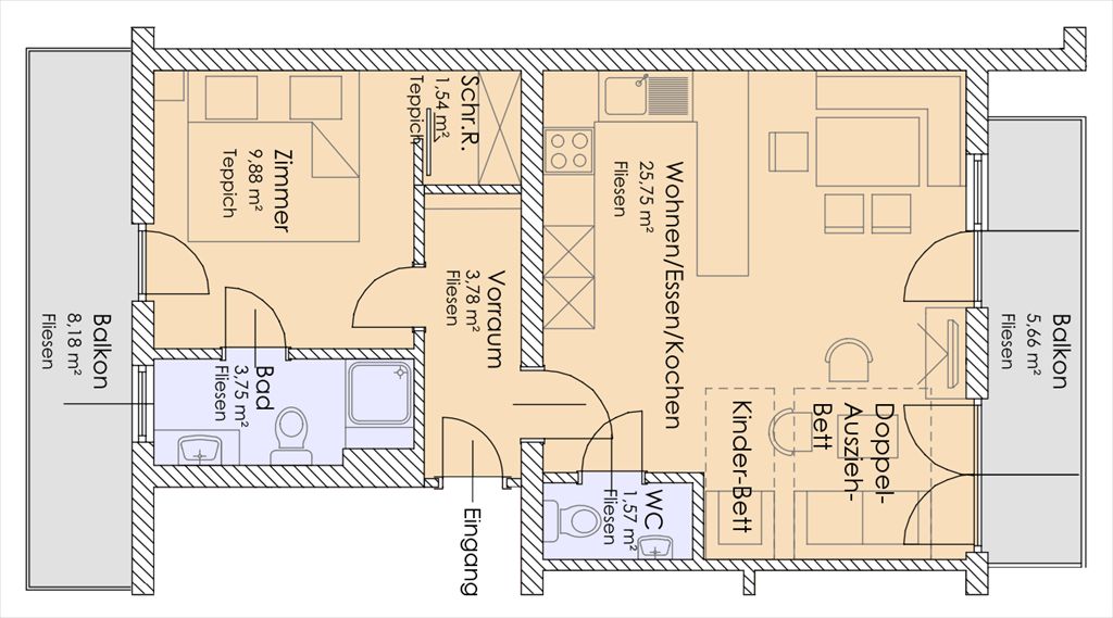 Modern ausgestattetes Appartement für 2-4 Personen ca. 50 m². Schlafzimmer für 2 Personen mit Balkon, begehbaren Schrank mit Safe, Badezimmer mit WC. Vorraum mit Garderobe. Großzügiger Wohn- Schlafraum mit Panoramablick und Balkon, Küche voll ausgestattet, gemütliche Sitzecke, zusätzliche Sitzecke oder Ausziehbett für 2 Personen, 2. WC. Hallenbad, Sauna, Dampfbad, Kräutersauna, Infraroth im Haus zur täglichen freien Benützung. Preis für 2 Personen inkl. Halbpension. Aufpreis € 55,00 für jede weitere Person Mit Frühstück und ohne Verpflegung möglich!