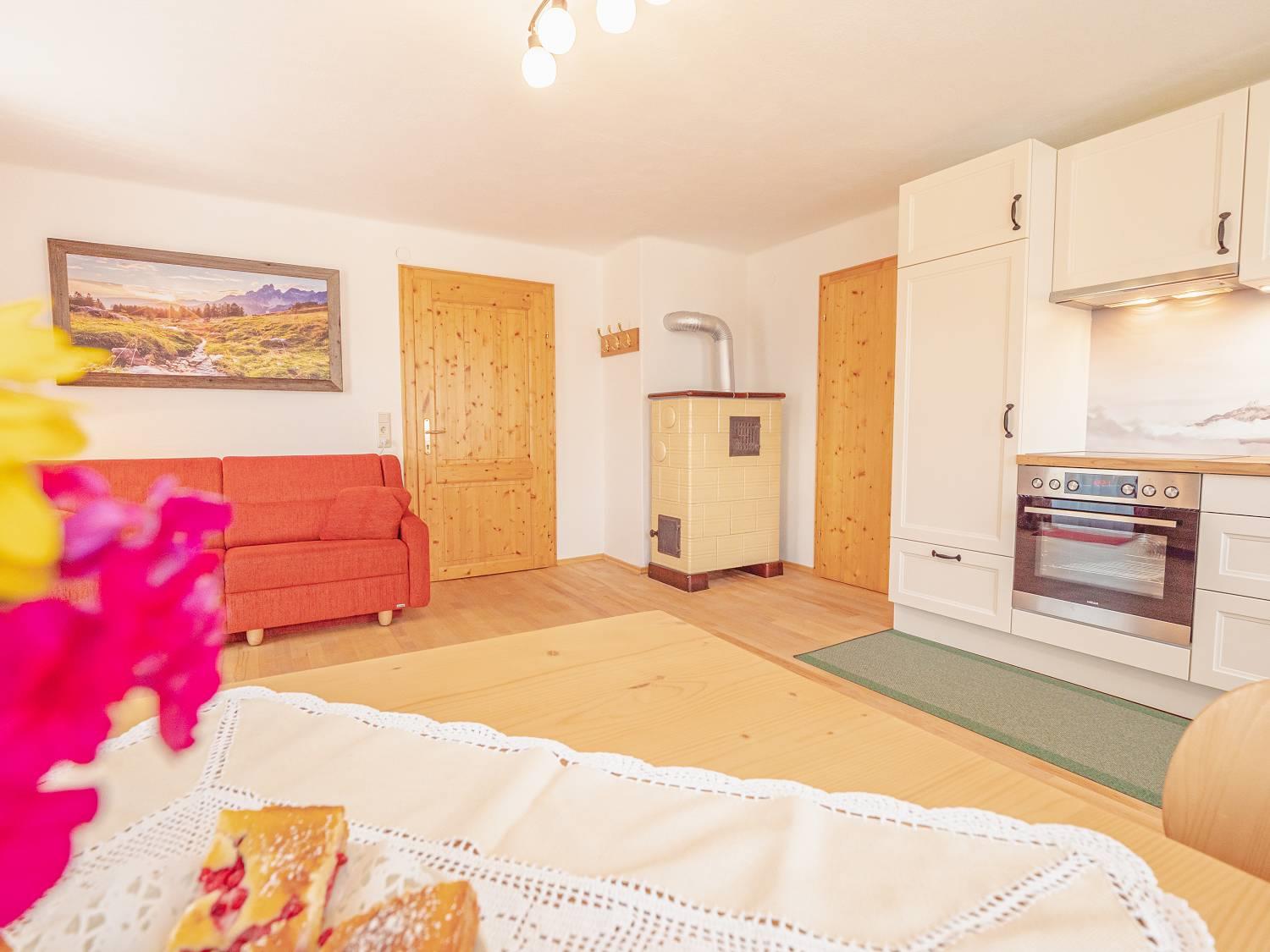 Die liebevoll eingerichtete Ferienwohnung mit 45m² ist ideal für 2 – 4 Personen und bietet Ihnen jeglichen Komfort den Sie in Ihrem Urlaub wünschen. Das Schlafzimmer mit Vollholzmöbel und Badezimmer lädt für kuschelige Stunden ein. Direkt neben dem Schlafzimmer ist ein Kinderzimmer mit einem Stockbett. Im Wohnraum mit Sitzecke, Balkon und gemütlicher Couch (ausziehbar), sowie einer voll ausgestatteten Küche können Sie den Urlaub so richtig genießen. Ein alter Kamin lädt zum Verweilen ein.