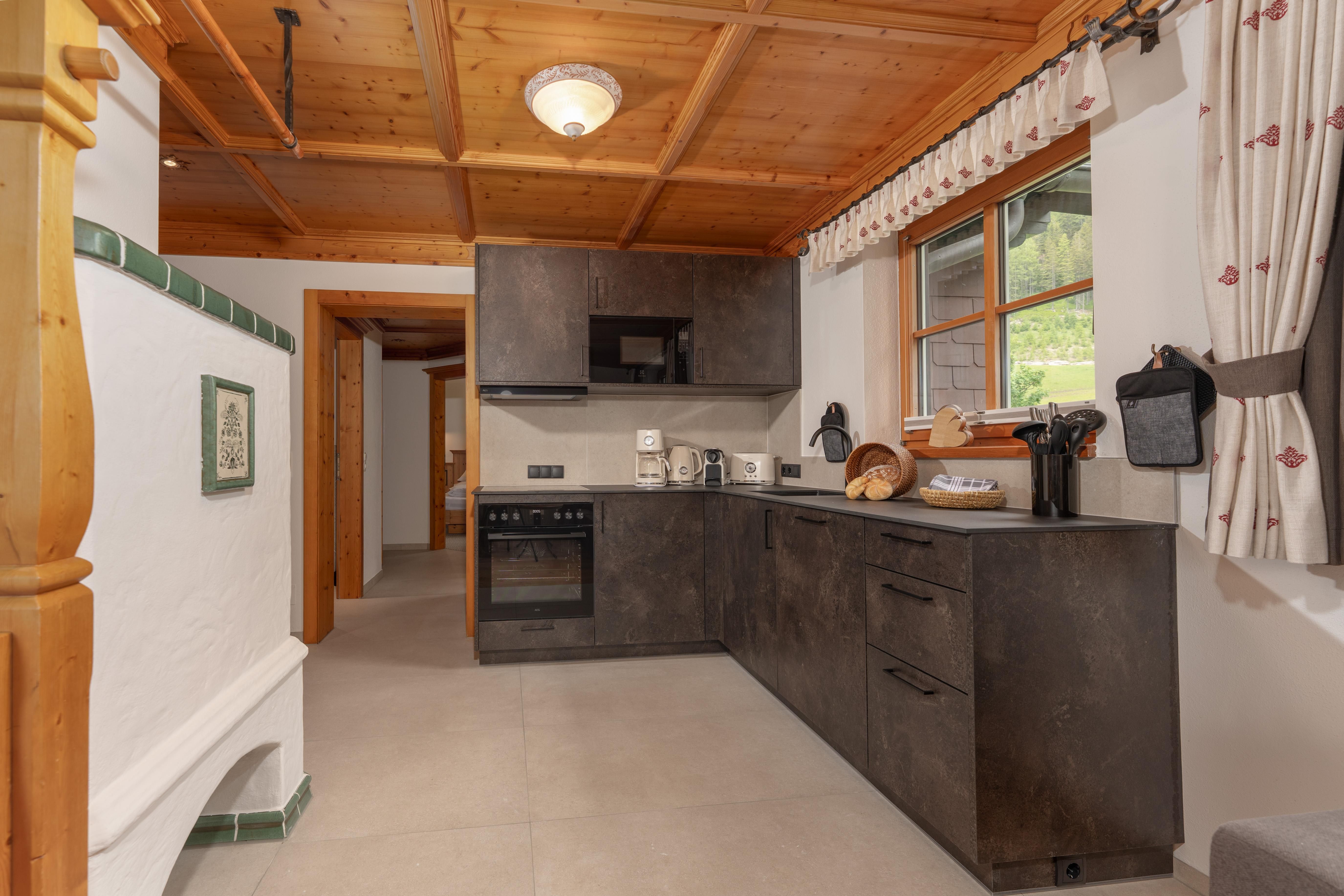 Das Appartement ist ausgestattet mit 2 Schlafzimmer (1x mit Stockbett), 1 Wohnzimmer (Ausziehcouch) mit Kachelofen, Sat-TV, Radio, Telefon, Mikrowelle, E-Herd, Kühlschrank, 2 Bad/Dusche, WC, Vorraum, Balkon