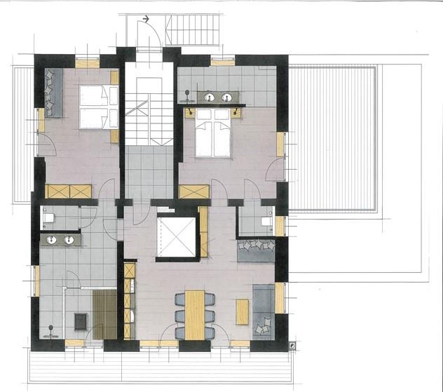 Im 2. Obergeschoss sticht das großzügige Luxus Appartement hervor und verspricht ein großzügiges sowie exklusives Raumangebot von 2 Schlafzimmern, 2 Badezimmern, 2 seperate WC, Vorraum. Die durchdachte Küche inmitten der Wohnung ist gemütlich offen ausgerichtet zum Wohnzimmer. Das Appartement verfügt über eine Salzsauna mit traumhaften Ausblick auf die Bergwelt. Balkon Richtung Süden und Westen sowie 30 m² Terrasse Richtung Osten.