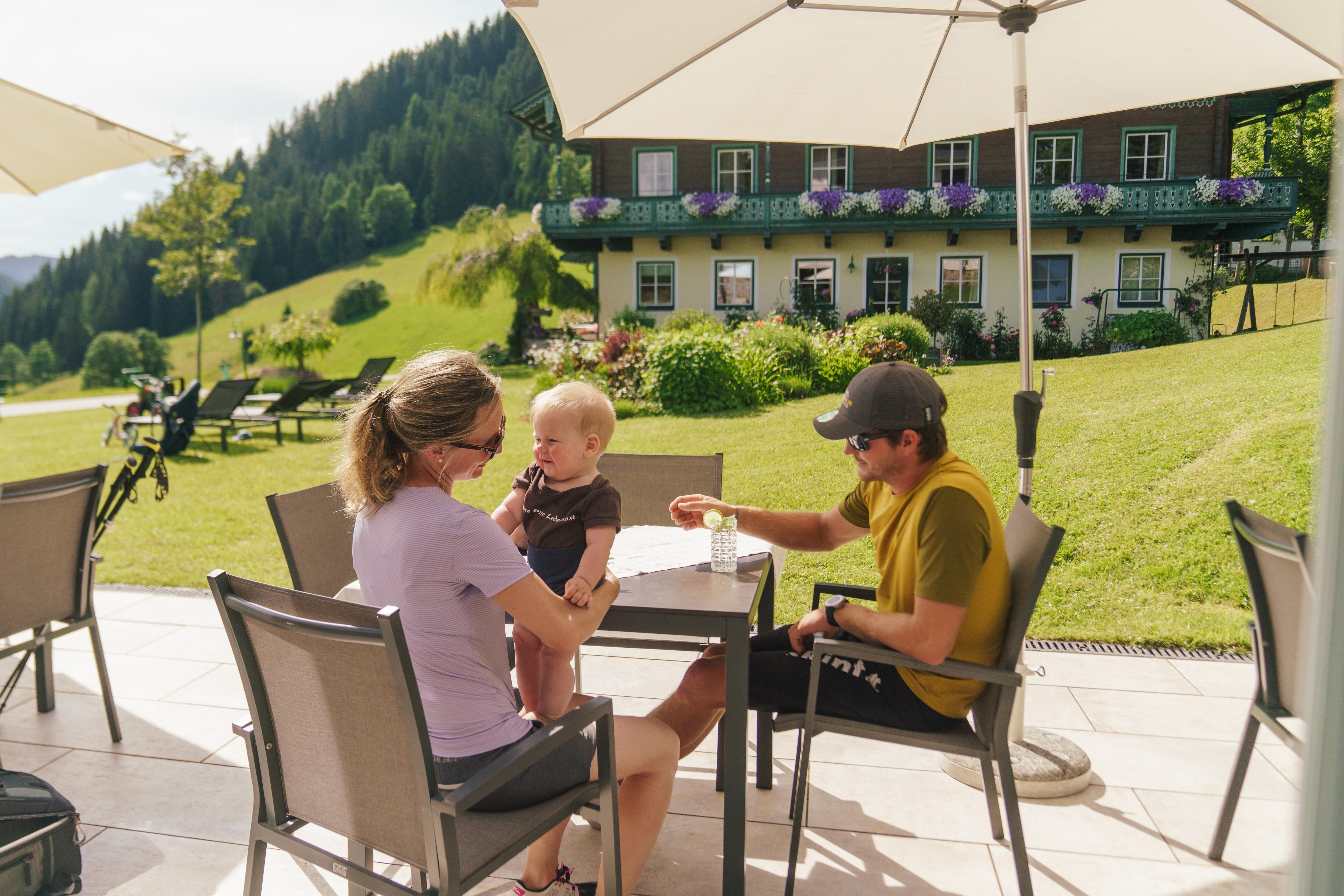Die Eltern genießen währenddessen eine wohltuende Auszeit, in unserem von der Senior-Chefin mit Liebe zu Detail gestalteten Garten.