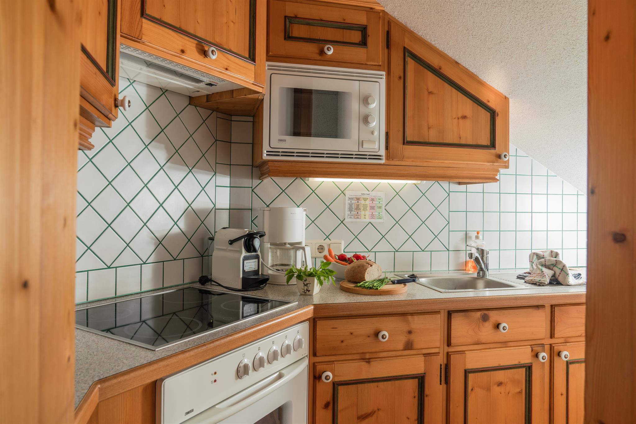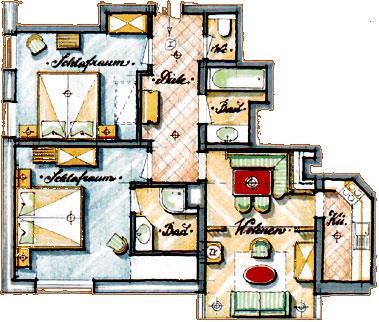 Das Appartement ist ausgestattet mit 2 Schlafzimmer, 1 Wohnzimmer (Ausziehcouch) mit Kachelofen, Sat-TV, Radio, Telefon, Mikrowelle, E-Herd, Kühlschrank, 2 Bad/Dusche, WC, Vorraum, kein Balkon - dafür eine große Panorama-Glasfront im Wohnzimmer.