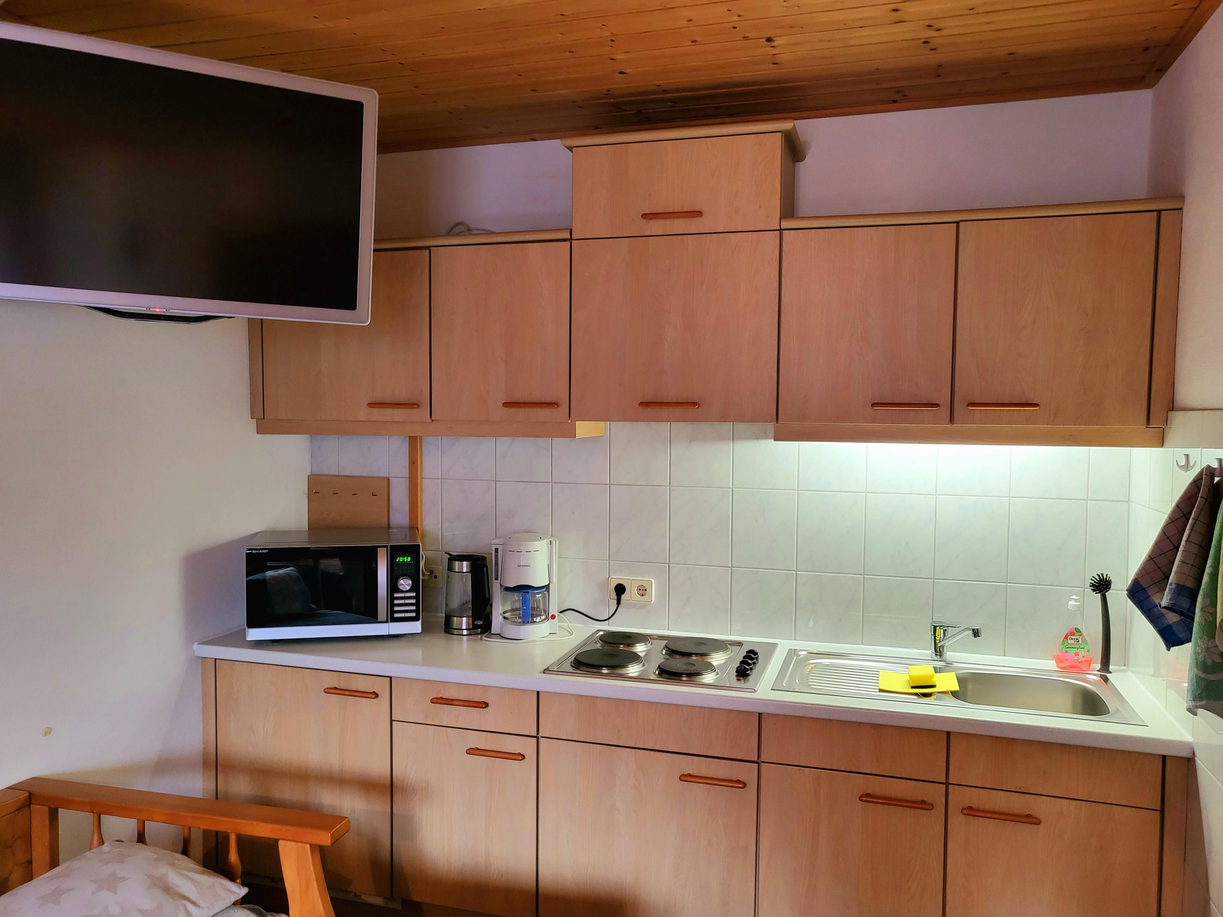 Komfortable und neuausgebaute Ferienwohnung - in einem gemütlichen alten Holzhaus. Sonnige Südlage - ruhig gelegen! 1 Schlafzimmer, Wohnschlafraum mit komplett eingerichteter Kochnische, Eßecke, Dusche/WC. Sat-TV. Terrasse.