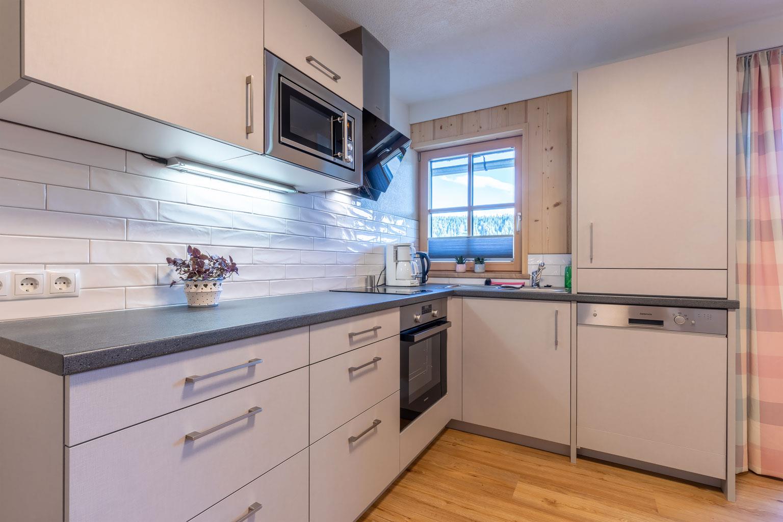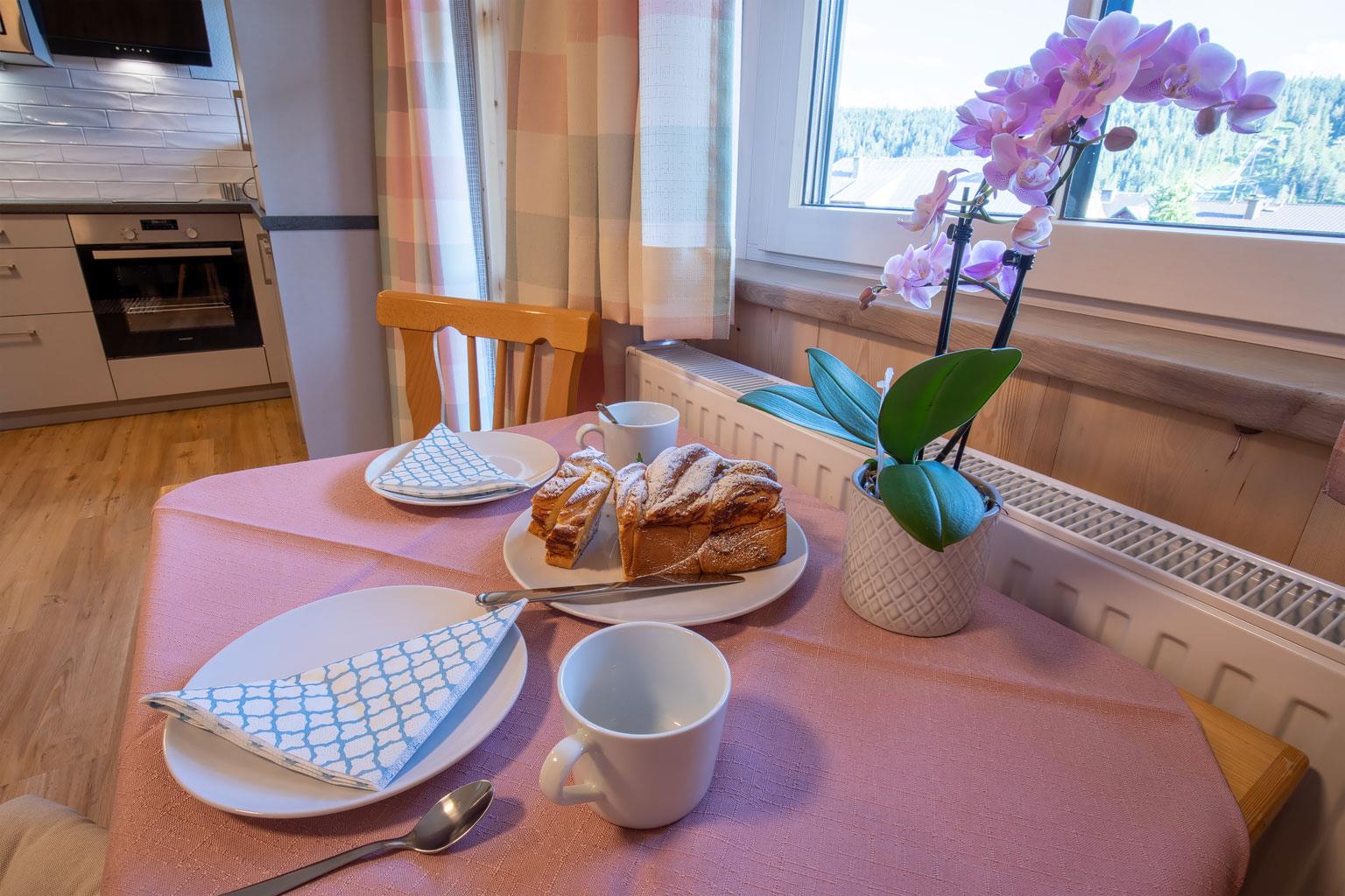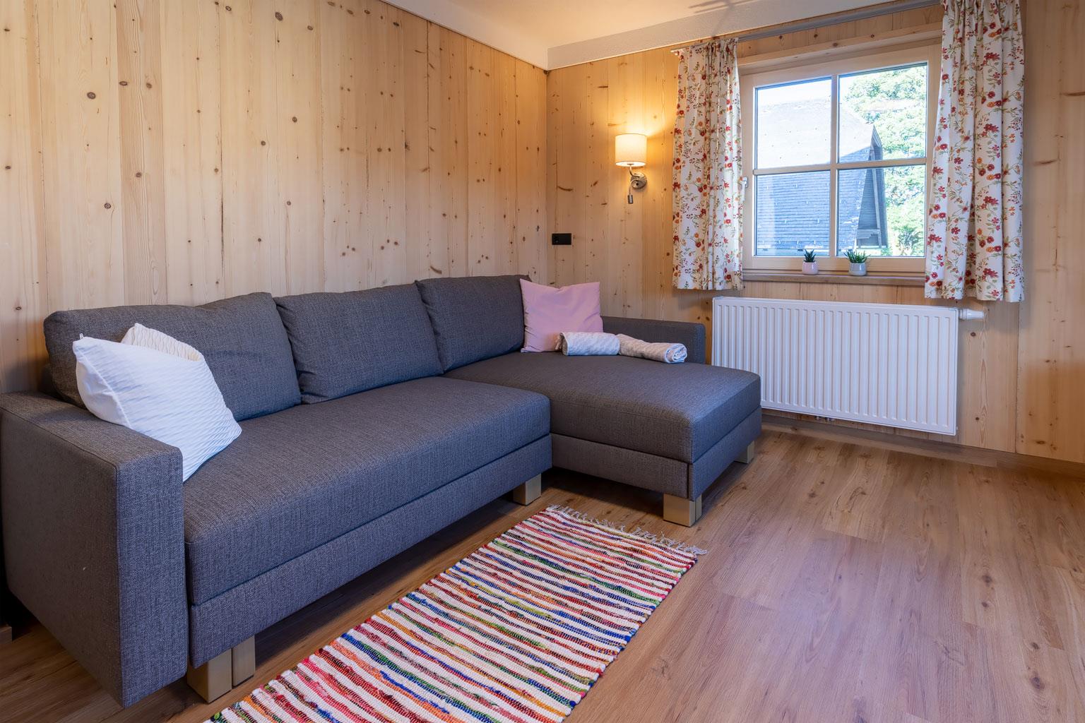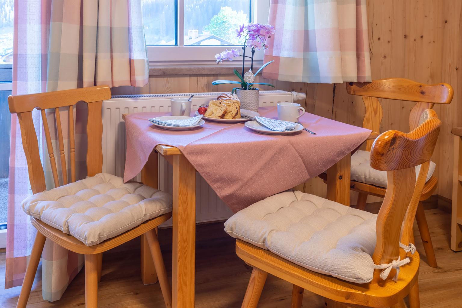 Unser Appartement II Enzian befindet sich im 1. OG und ist Richtung Süden/Westen ausgerichtet. Das Appartement ist nach der Renovierung 2021 eine sonnige, gemütliche Oase zum Ausspannen. Viel Holz und eine liebevolle Einrichtung laden zum Entspannen und genießen ein. Ein Doppelzimmer mit Holzboden und Holzmöbel, ein großzügiges Bad mit Dusche, separatem WC, geräumiger Vorraum runden das Highlight - die Wohnküche Richtung Süden mit Balkon ab. Die Wohnküche wurde mit einer toll ausgestatteten Küche, mit Esstisch sowie einem gemütlichem Sofa mit Fernsehecke gestaltet. Der helle, freundliche Raum lädt bei jedem Wetter zum Genießen ein – bei Sonnenschein auch mal am Balkon.