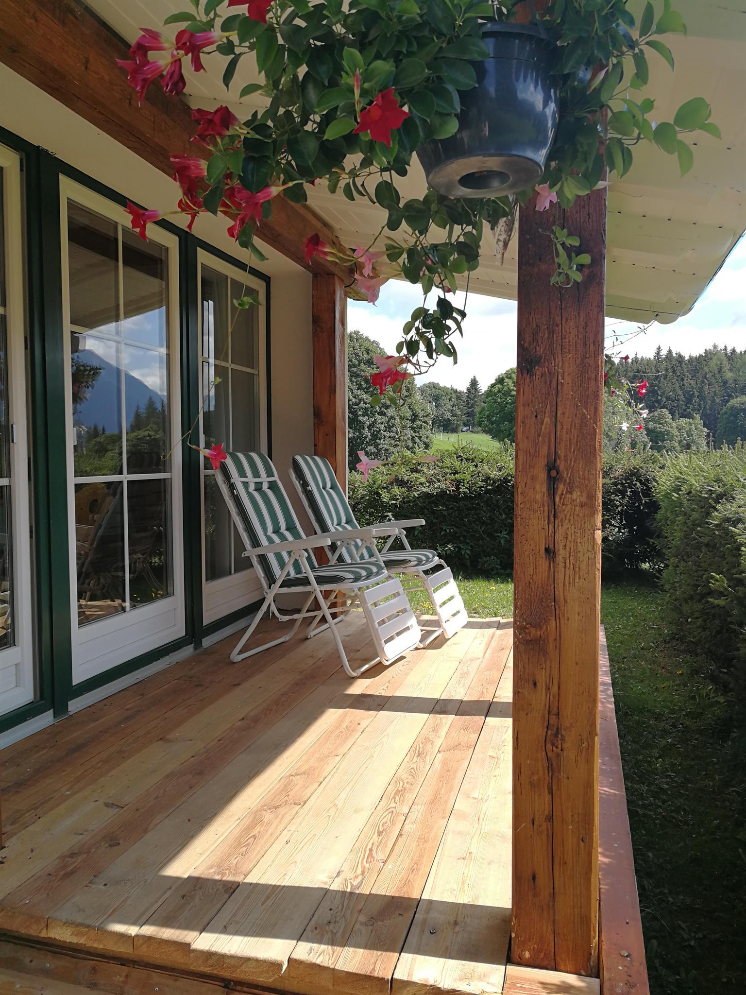 Am Balkon genießen Sie am Morgen die frische Luft mit Blick die Schladminger Tauern.