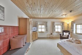 Appartement für 2-5 Personen: Vorraum, separate Küche (komplett eingerichtet) mit gemütlicher Sitzecke, 2 Schlafzimmer mit Doppelbett und TV, Dusche/WC, Kostenloser Internetzugang.